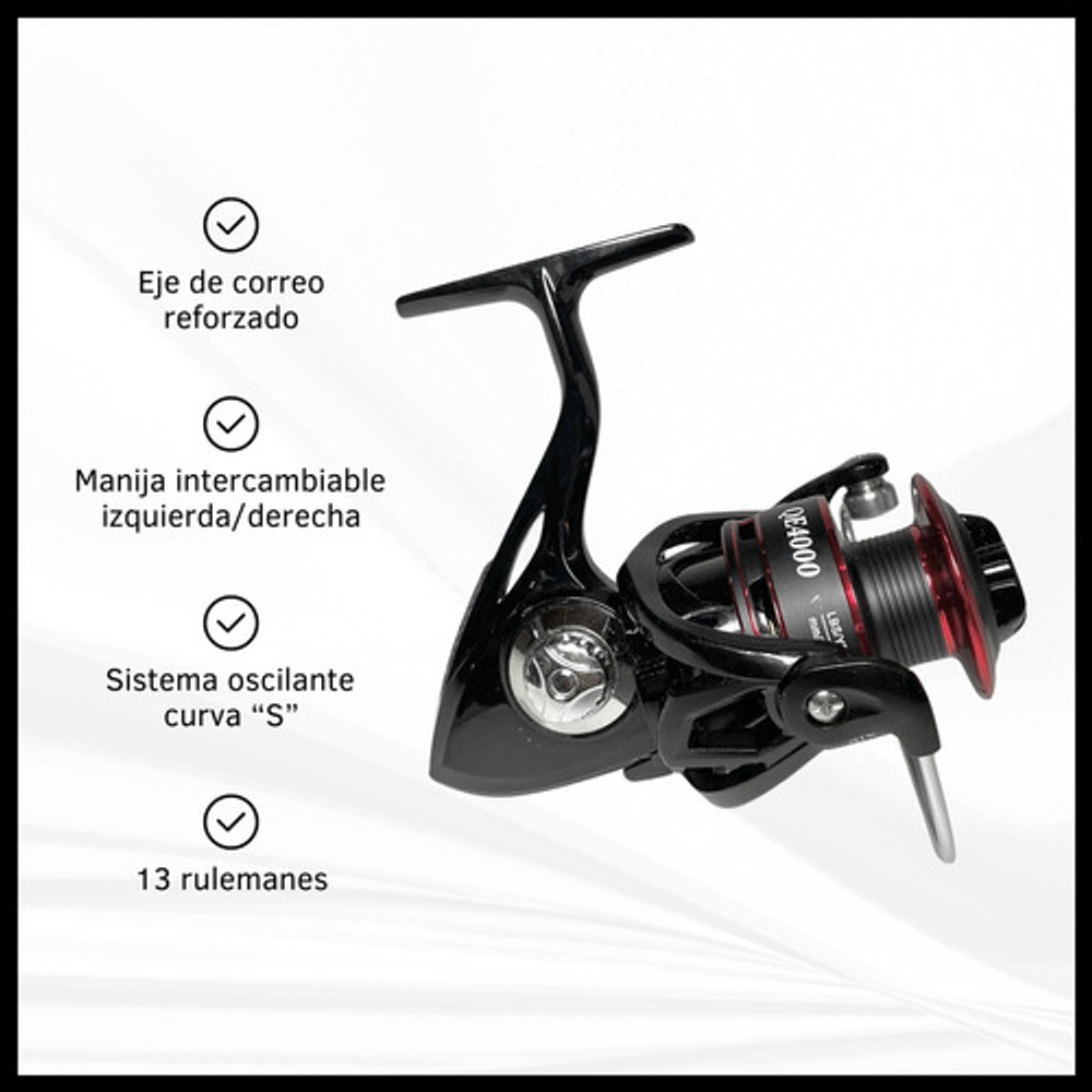 Características: • Capacidad: 0.30/200 0.35/160 0.40/120. • Potente sistema de engranajes impulsores que proporcionan una potencia de arrastre y un rendimiento óptimo. • Manija intercambiable izquierda/derecha, para adaptarse a la preferencia del pescador. • Excelente sistema de oscilación de línea, que ayuda en el lanzamiento y la recuperación. • Rodillo de línea anti torsión preciso que ayuda a reducir los enredos y mejorar el rendimiento de la pesca. • Eje de correo reforzado diseñado para soportar la presión durante la pesca. • Peso: 265 gramos. • Radio de giro: 5.2:1, que garantiza rapidez para recuperar la línea. • Carrete largo que permite una mayor distancia de lanzamiento. • 13 rulemanes.