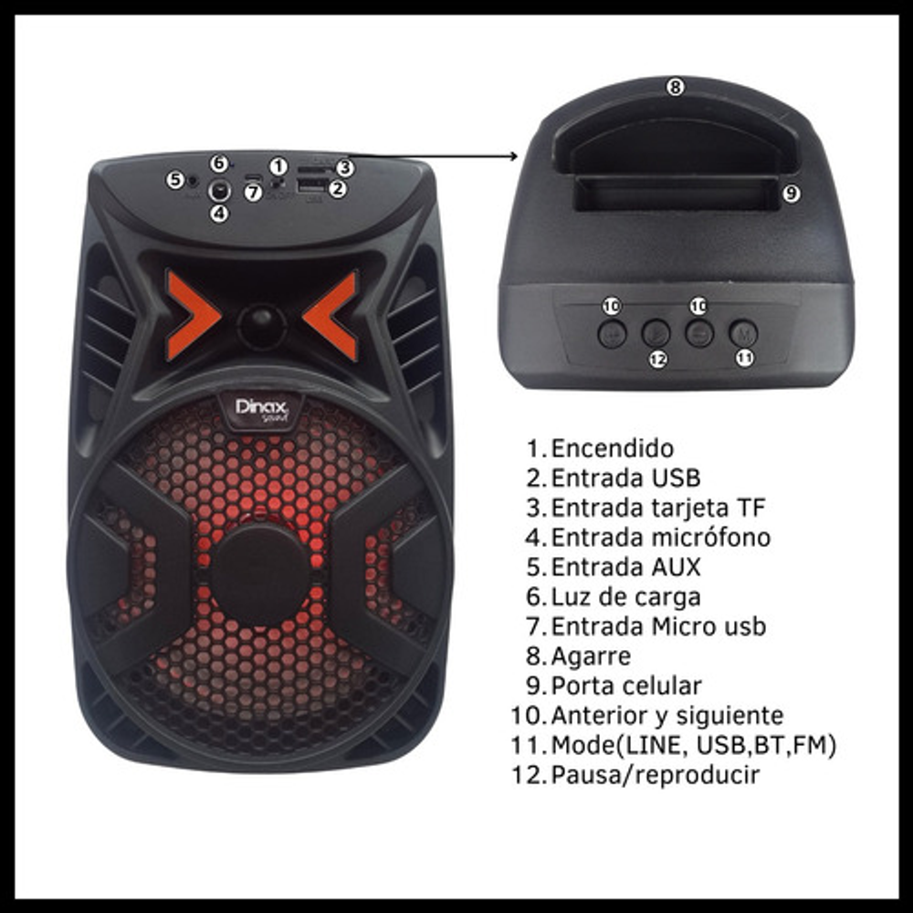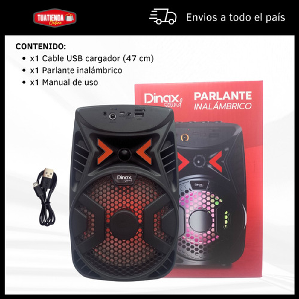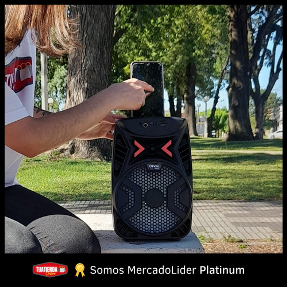 MINI PARLANTE PORTÁTIL DINAX. https://articulo.mercadolibre.com.ar/MLA-1552588784-parlante-mini-inalambrico-conexion-bluetooth-usb-sd-radio-fm-_JM