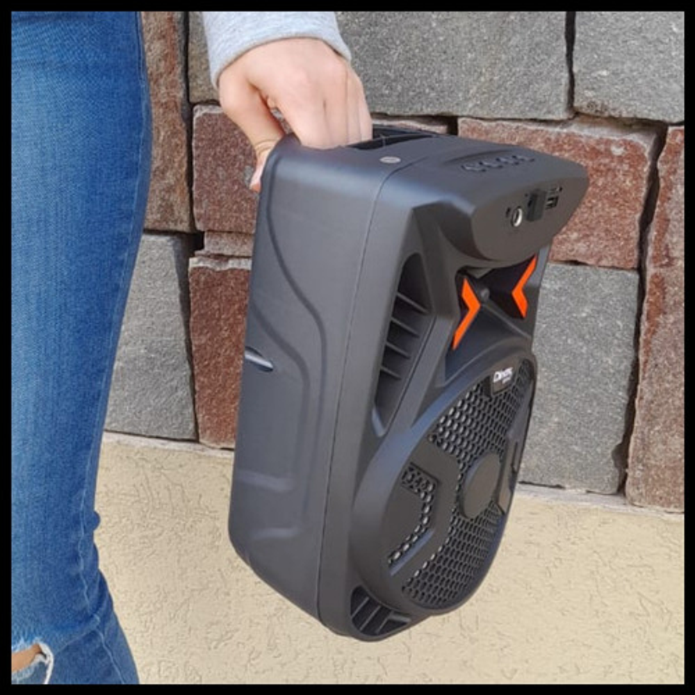 Características: • Potencia 700 W. • Incluye luces LED RGB. • Conexión Bluetooth. • Batería recargable vía USB. • Incluye cable USB (42 cm). • Entrada para micrófono, USB y Tarjeta TF.