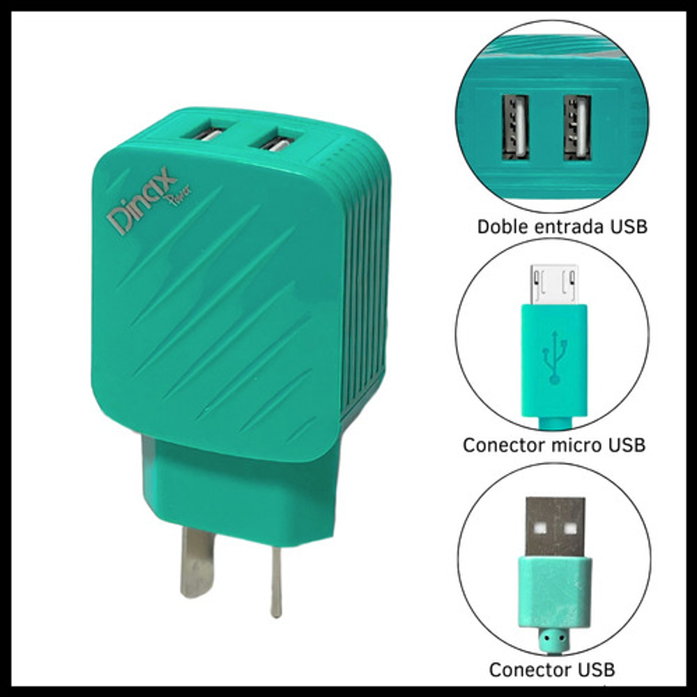 CARGADOR DOBLE USB CON CABLE MICRO USB CARGA RÁPIDA