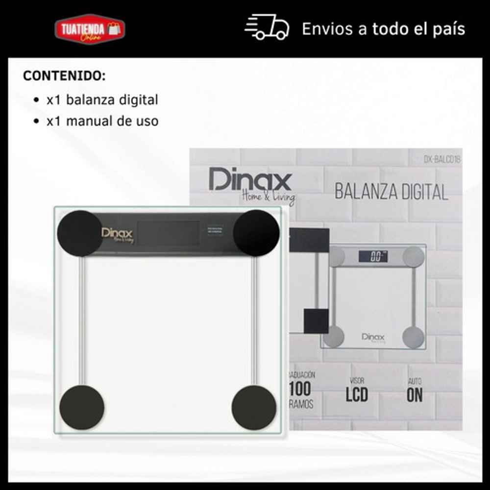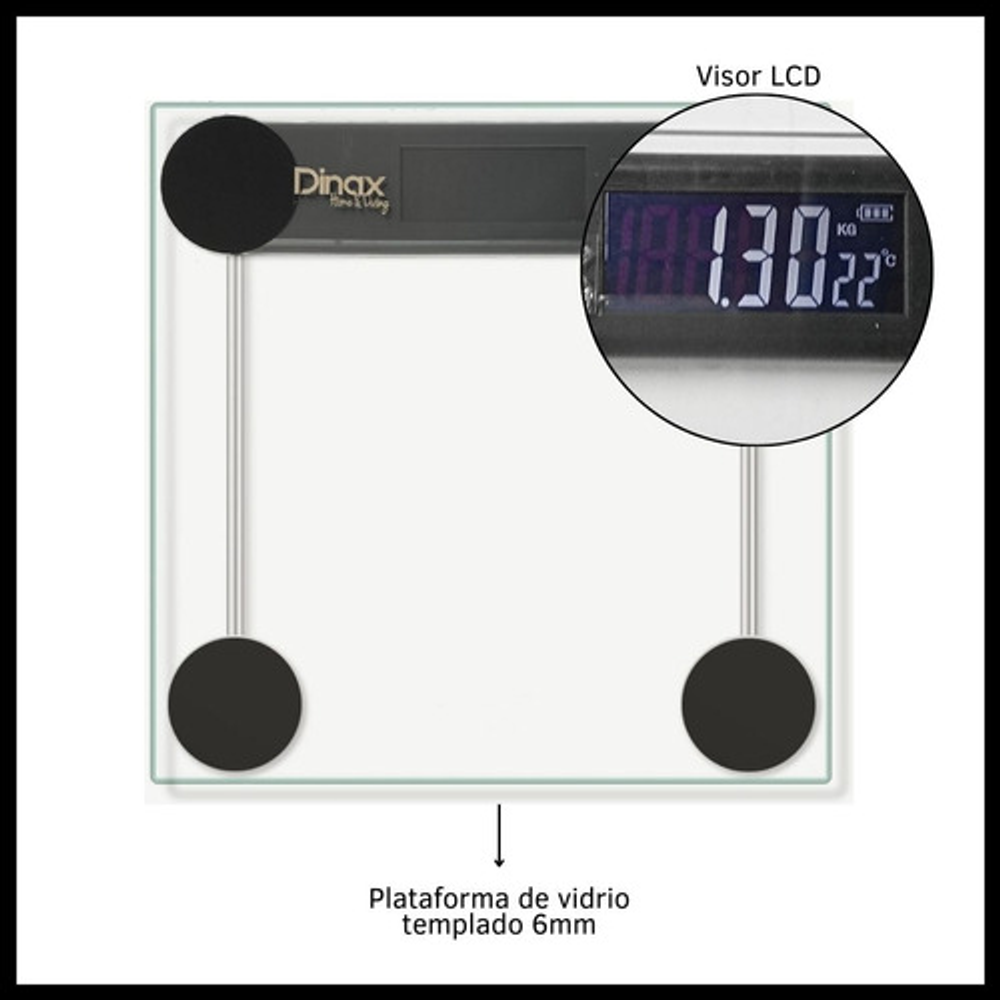 CARACTERÍSTICAS: -Apagado automático -Funciona con 2 pilas 1.5 V (no incluidas) -Capacidad mín: 5 kg -Capacidad máx: 180kg -Plataforma de vidrio -Visor LCD