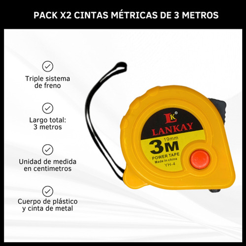 PACK X2 CINTAS METRICAS DE 3M CON TRIPLE FRENO