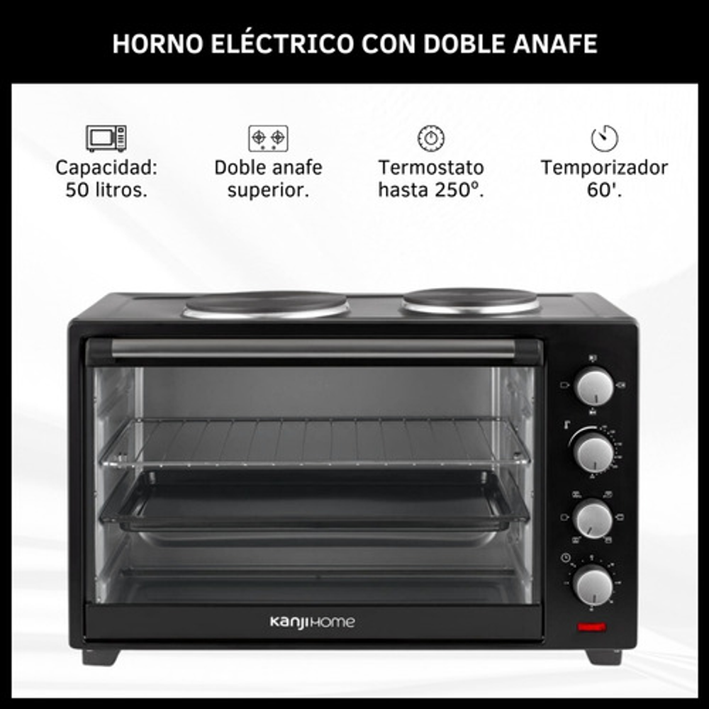 HORNO ELÉCTRICO KANJI DOBLE ANAFE 50 LITROS