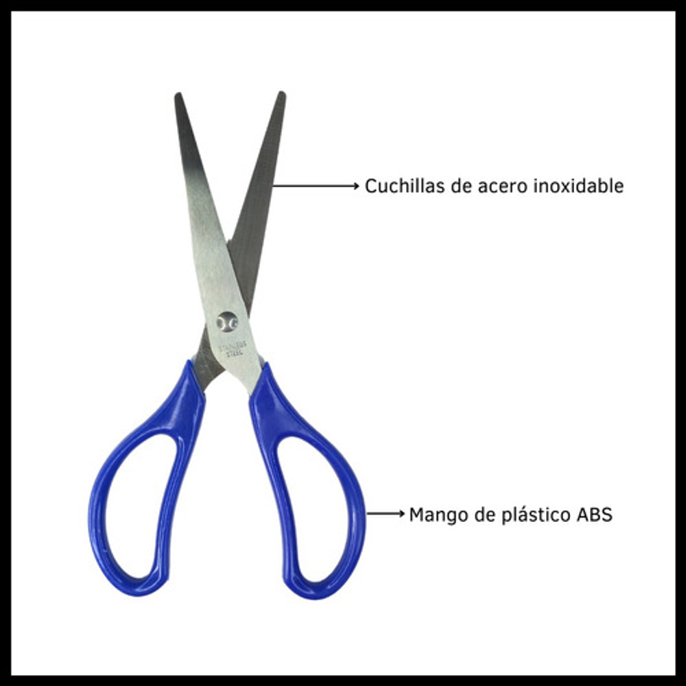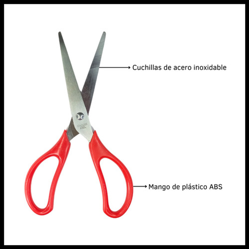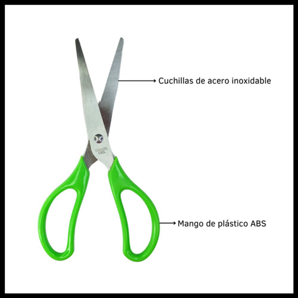 Características: -Ideales para actividades escolares, manualidades, etc. -Sujeción cómoda y antideslizante. -Cuchillas de acero inoxidable. -Resistentes al desgaste. -Mango de plástico ABS. -Corte suave y preciso.