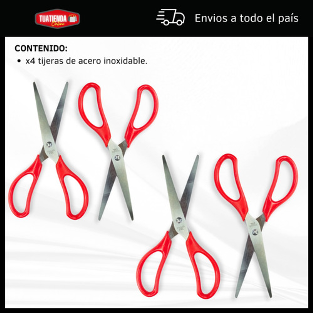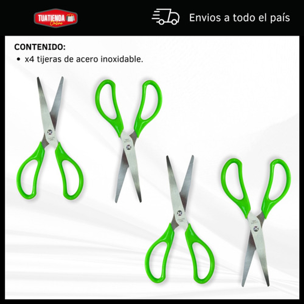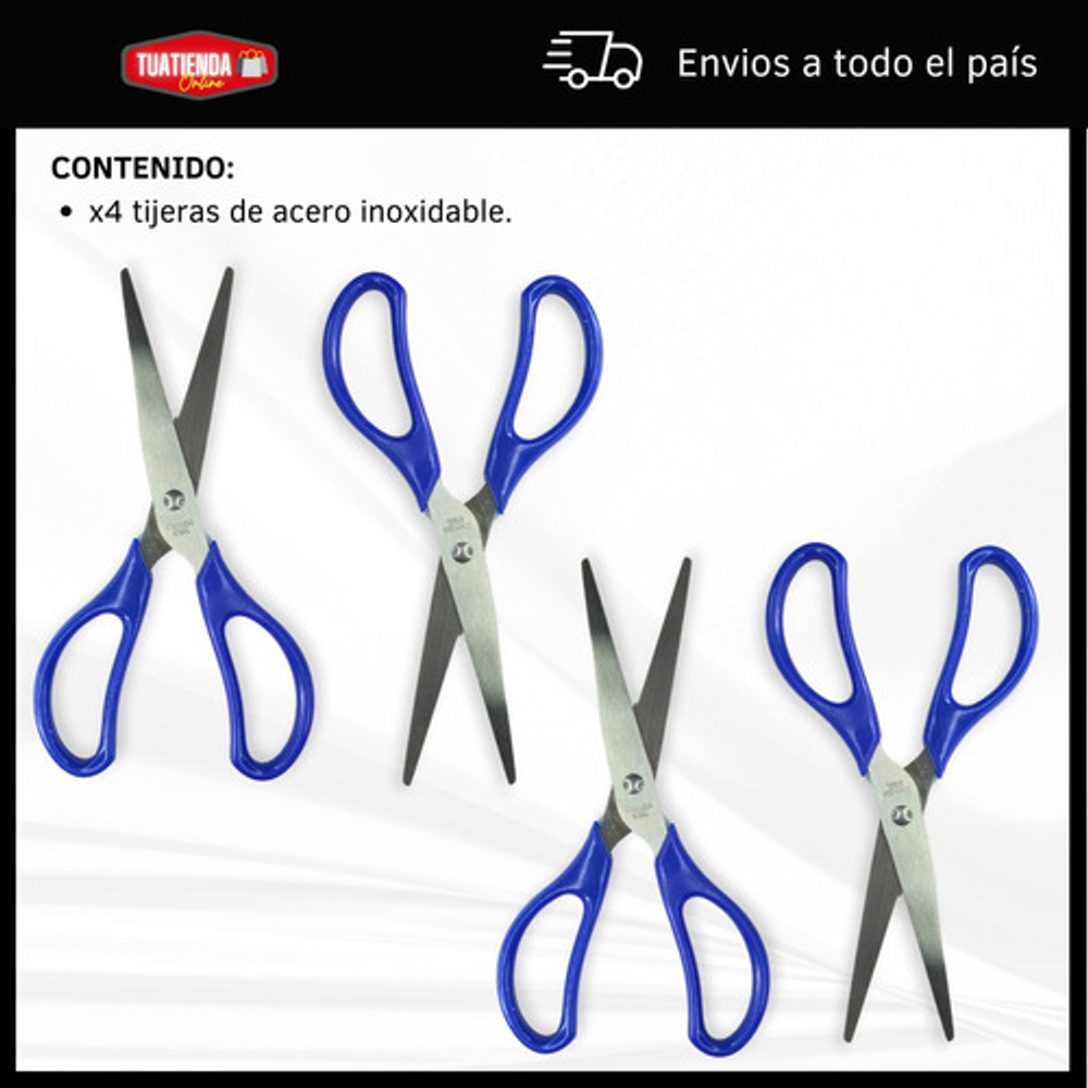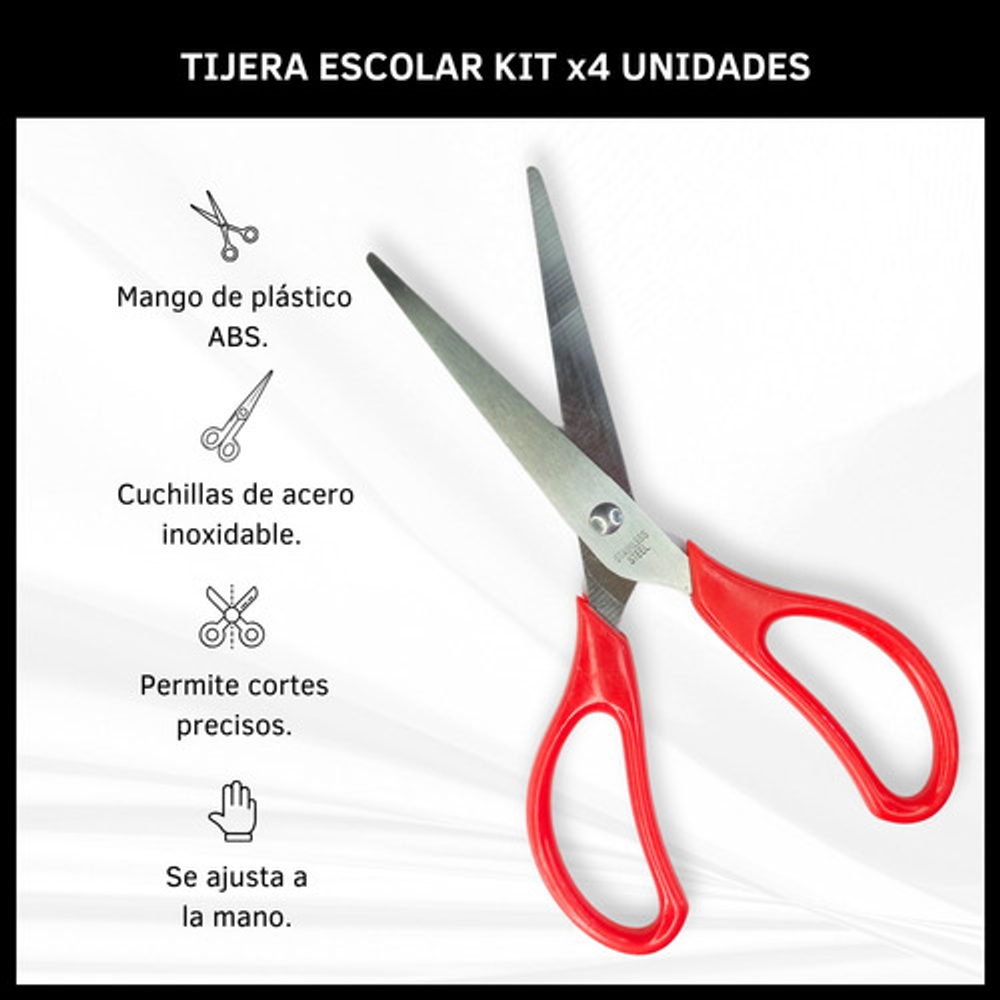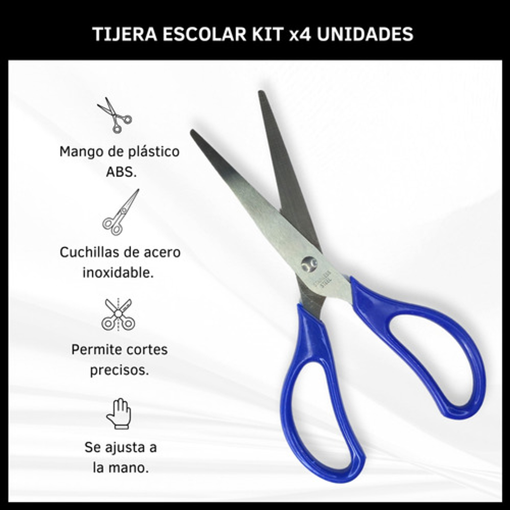 TIJERAS ESCOLARES CON MANGO DE COLOR PACK X4 UNIDADES: