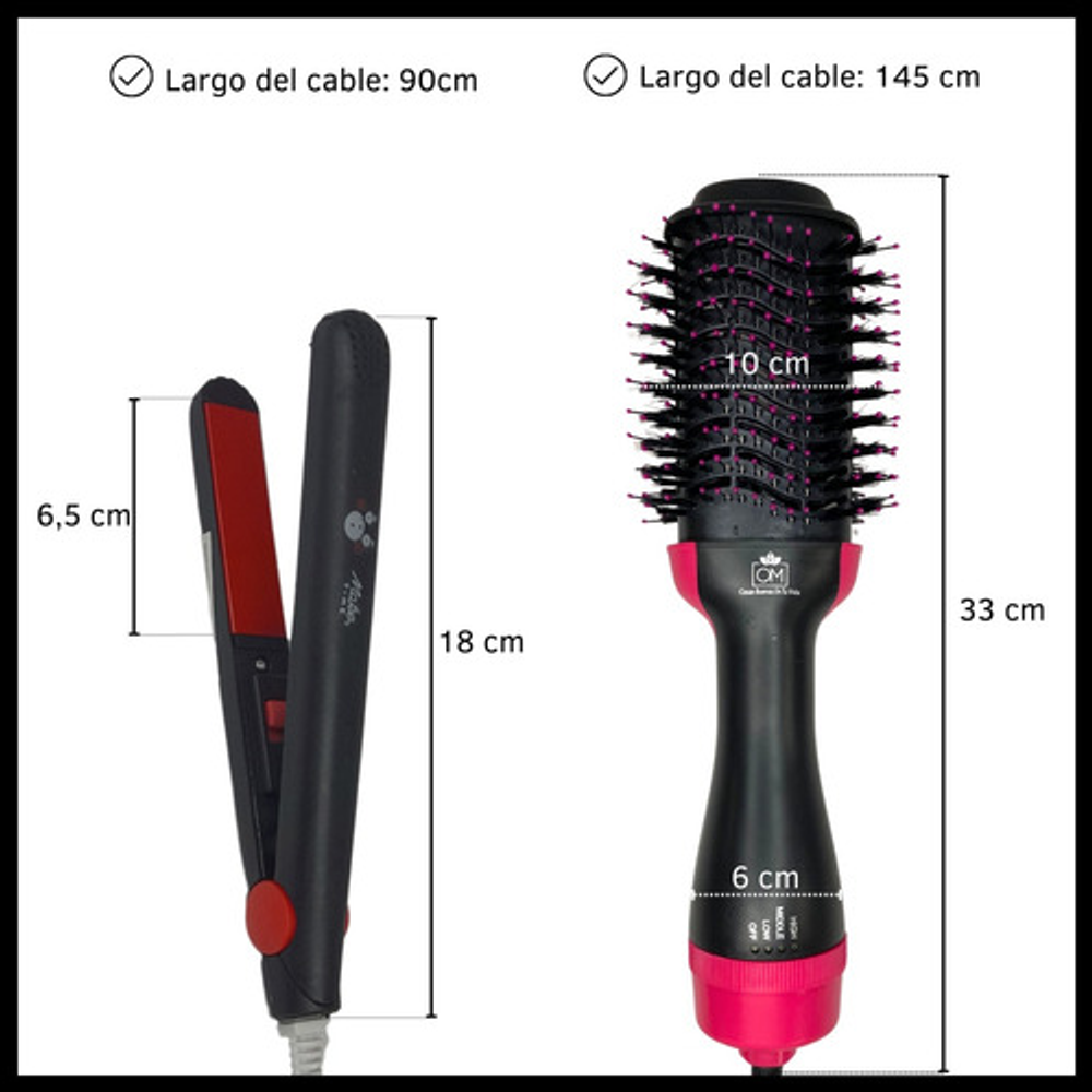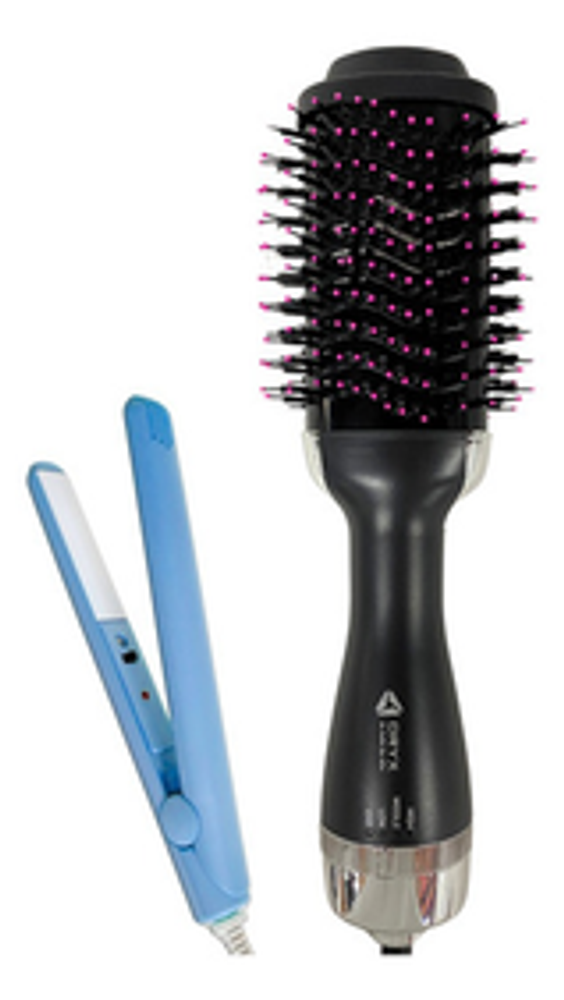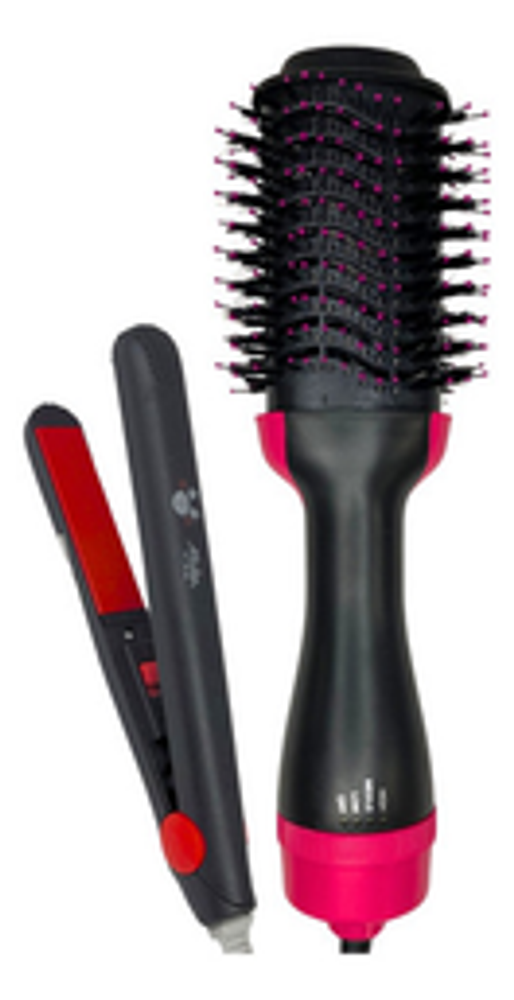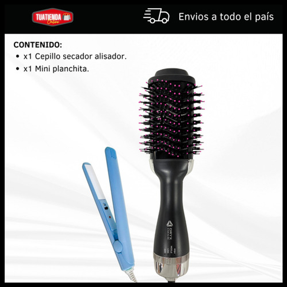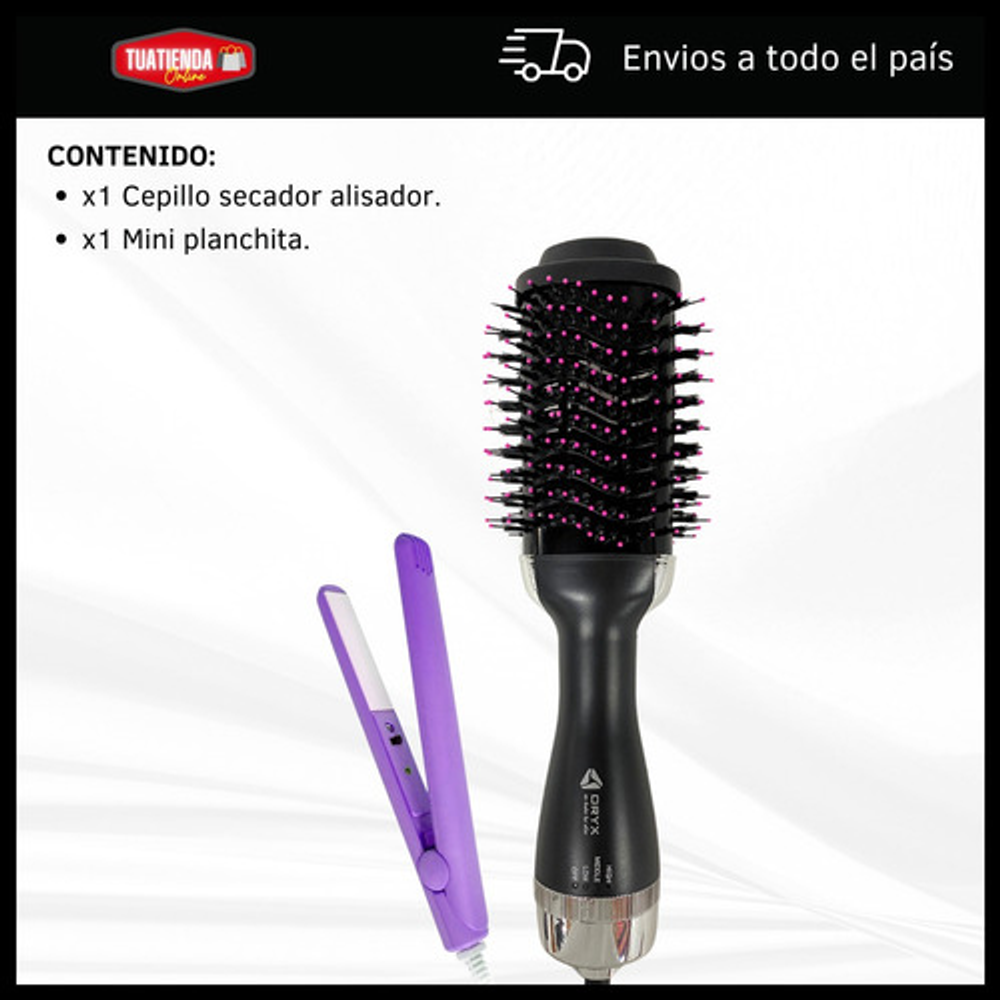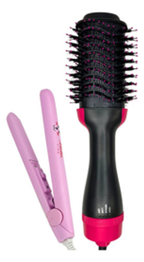 *Con este combo, podrás arreglar tu cabello al instante. El cepillo secador te permite moldear y secar tu pelo a la vez, mientras que la mini planchita es ideal para los toques finales.