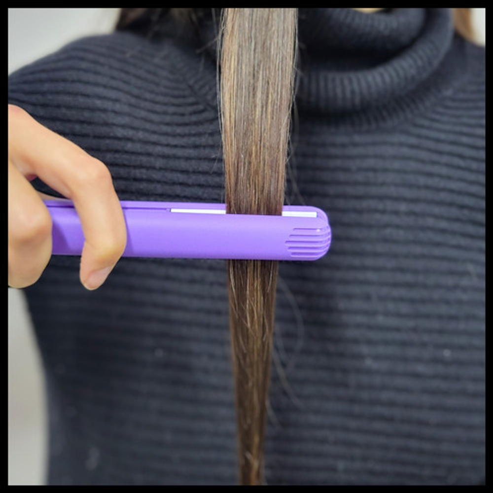 Gracias a su tamaño permite alisar el flequillo, los pequeños cabellos o de difícil acceso.