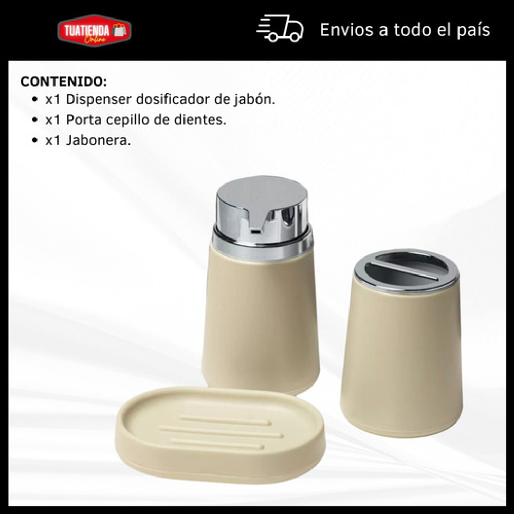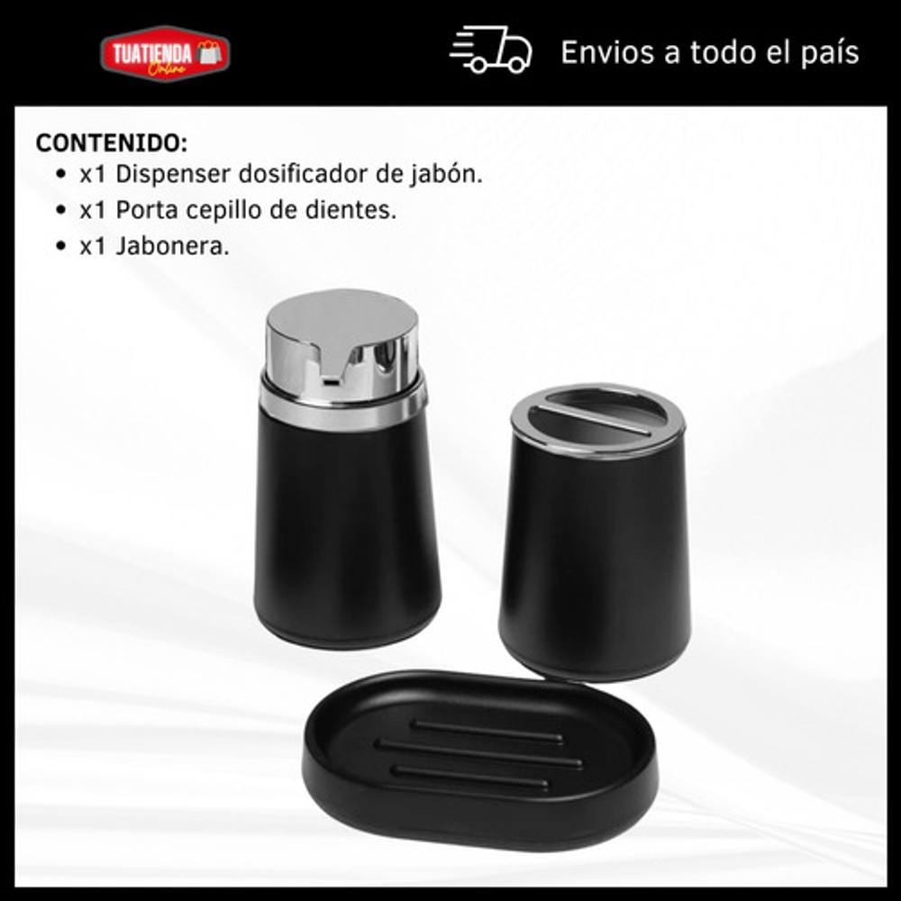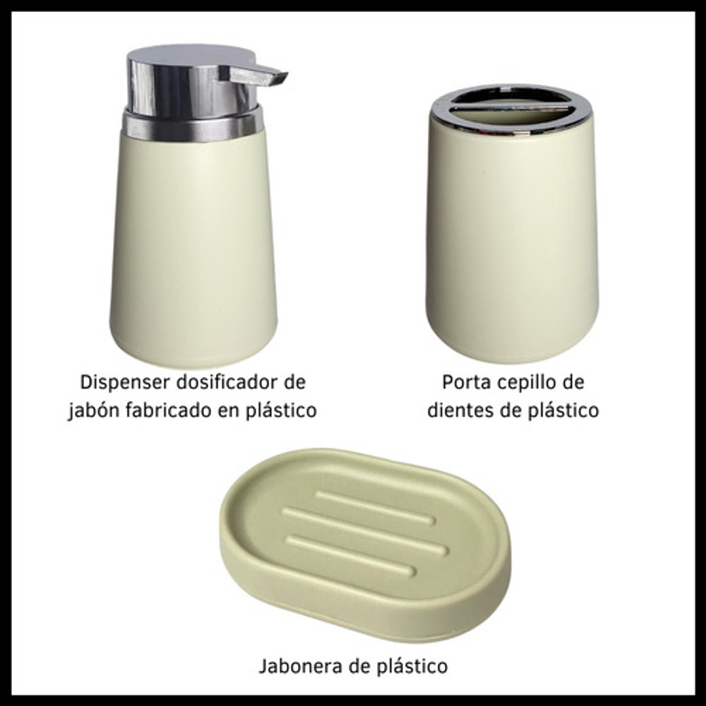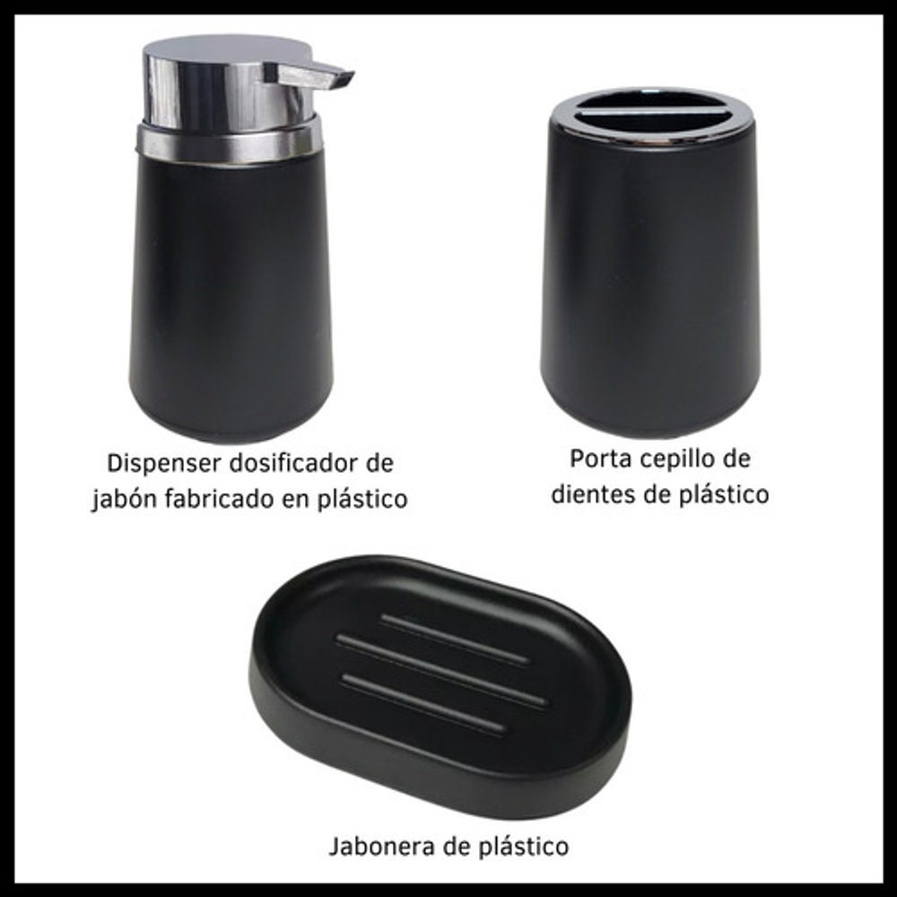 Piezas incluidas: Dispenser,Jabonera,VasoPortaCepillo