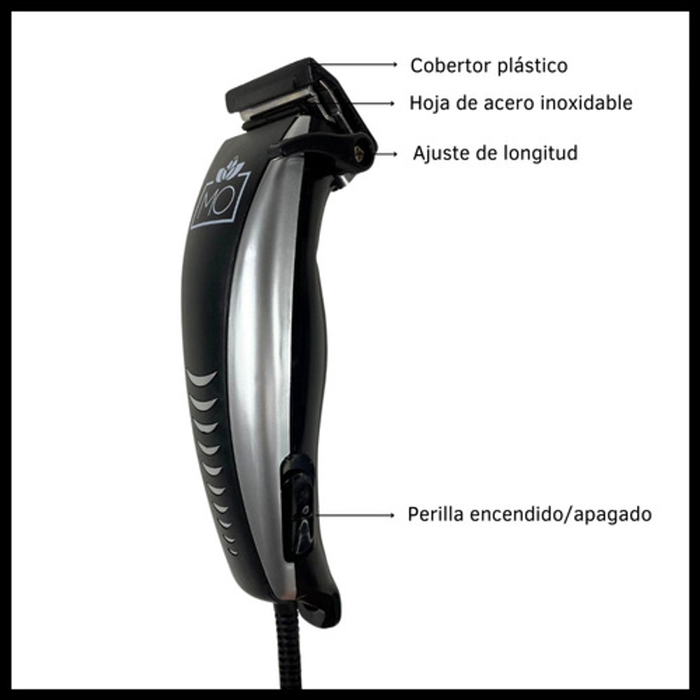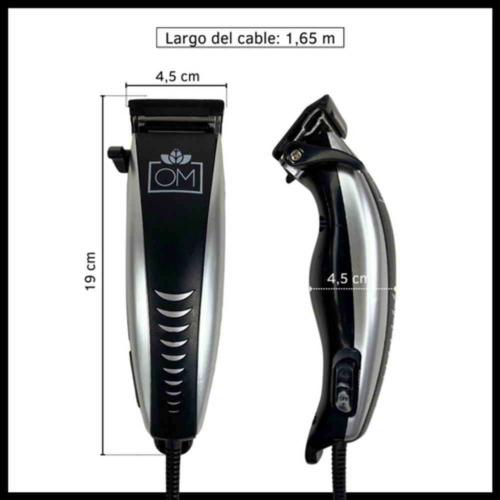 Características maquina de pelo: • Medidas de longitud de corte: 3mm, 6mm, 9mm y 12mm. • 4 cabezales intercambiables y ajustables. • Sistema de corte ajustable. • Incluye un cepillo lavable. • Combinación de estilos. • Cuchillas de acero inoxidable. • Incluye: peine de limpieza, aceite lubricante, tijera.