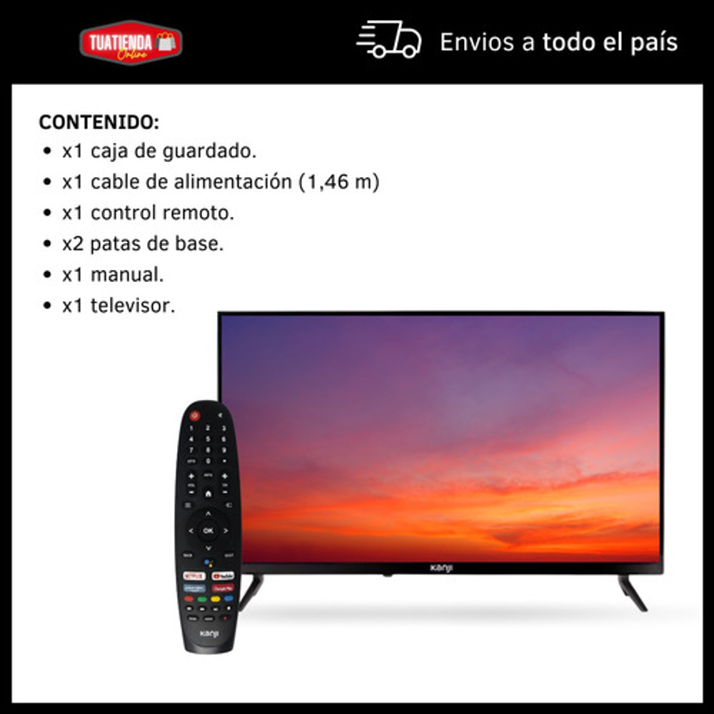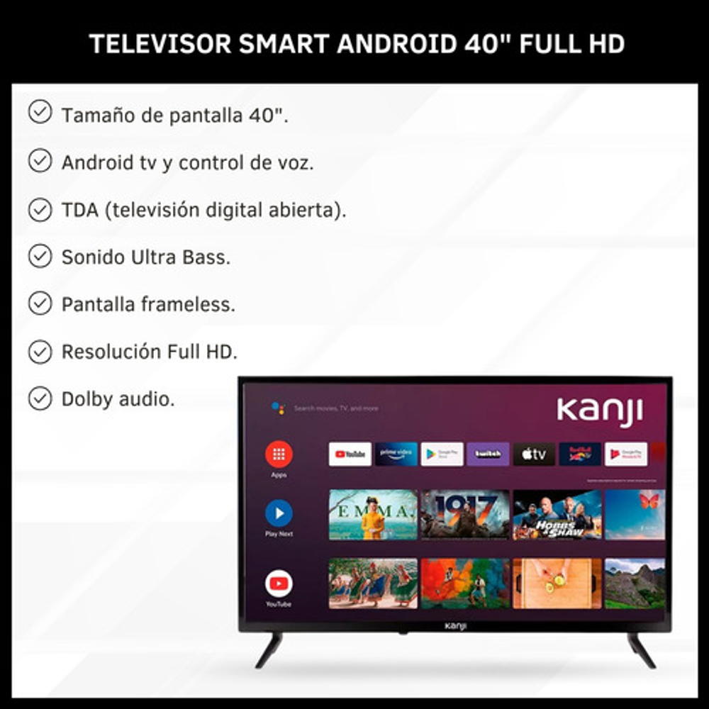 Youtube, Netflix y Google Play. -Ultra Bass. -TDA. -Pantalla frameless. -Audio Dolby.