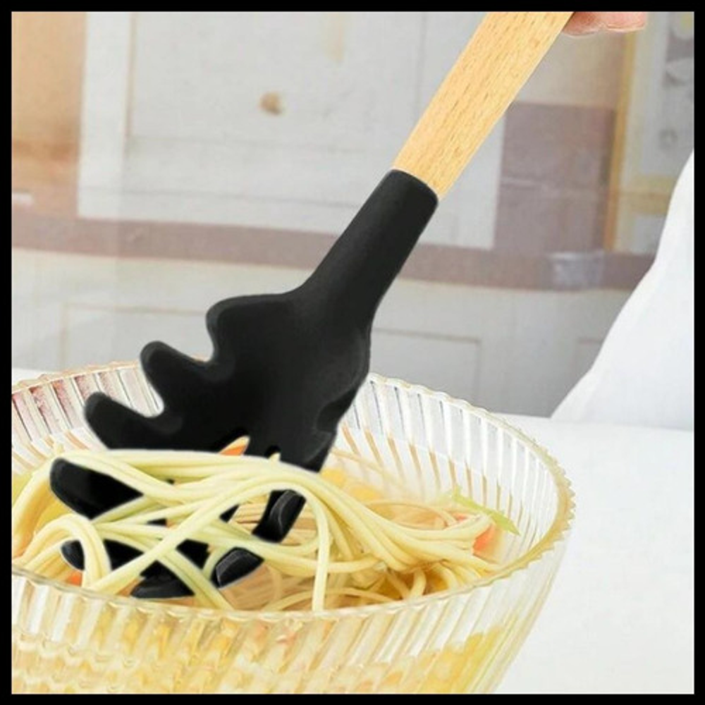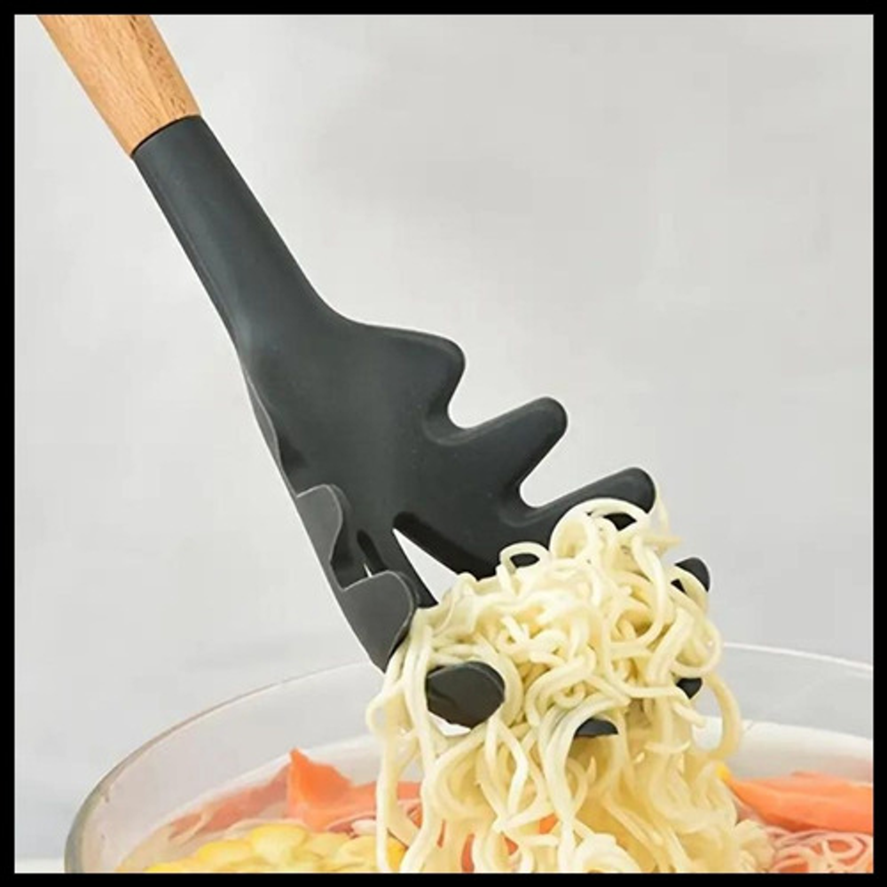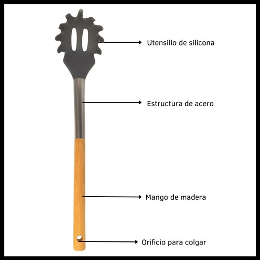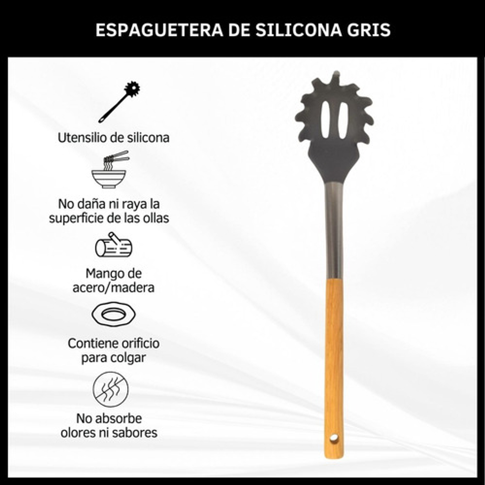 ESPAGUETERA SILICONA GRIS MANGO ACERO/MADERA