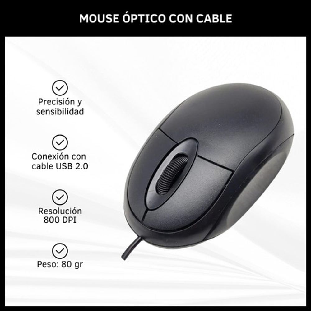 MOUSE OPTICO CON CONEXION CABLE USB CON 800 DPI