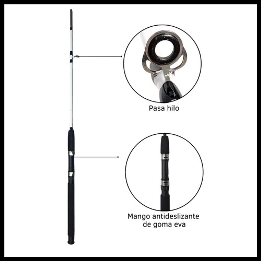 Mango de goma eva antideslizante. -Composición fibra de vidrio, liviana con gran reacción, extraordinaria resistencia y flexibilidad.