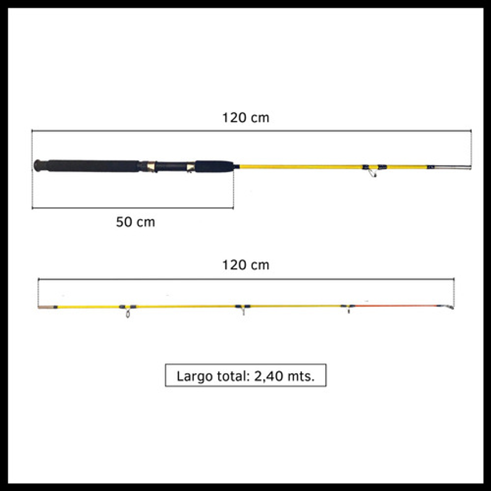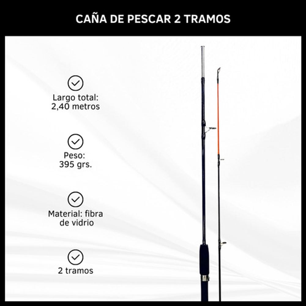 CAÑA DE PESCAR 2 TRAMOS 2.40 METROS FIBRA DE VIDRIO MACIZA