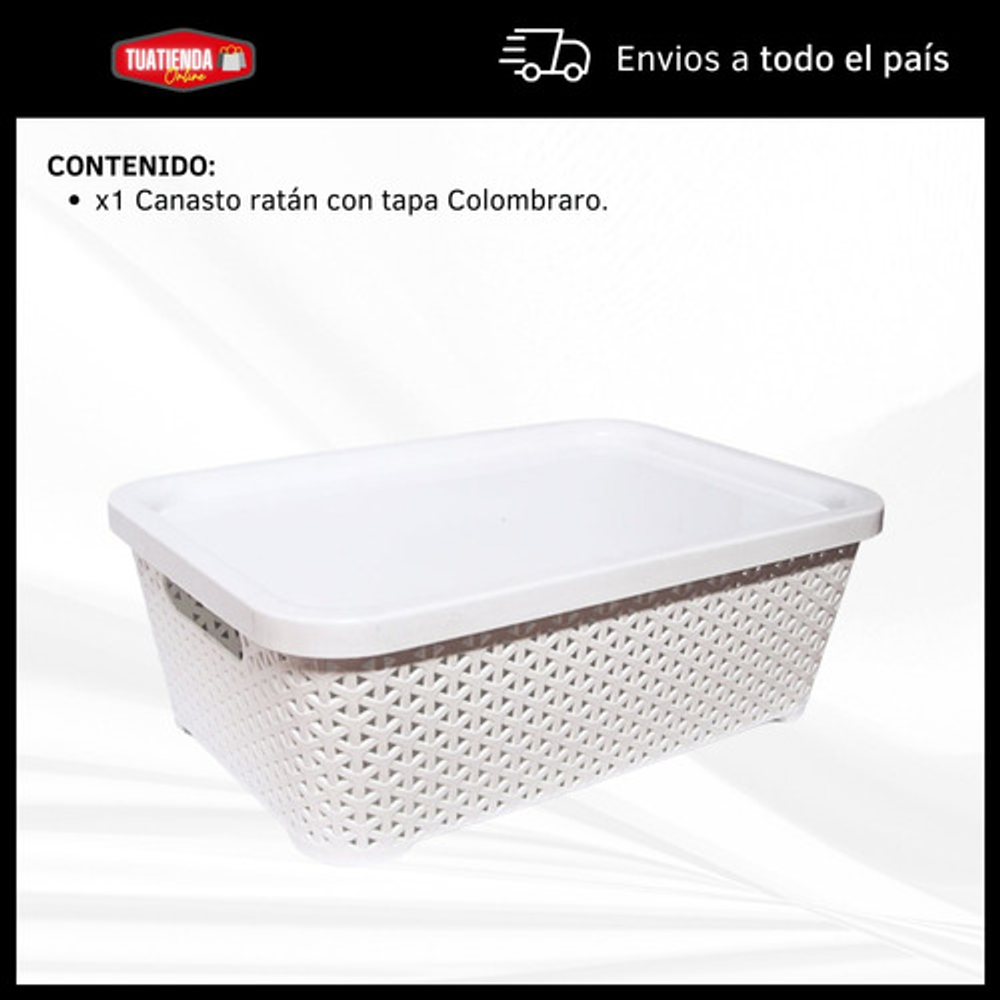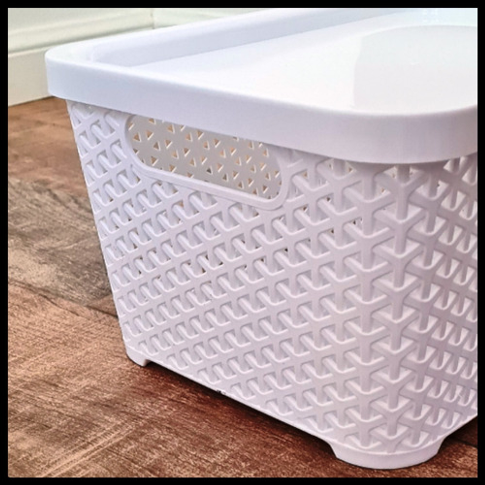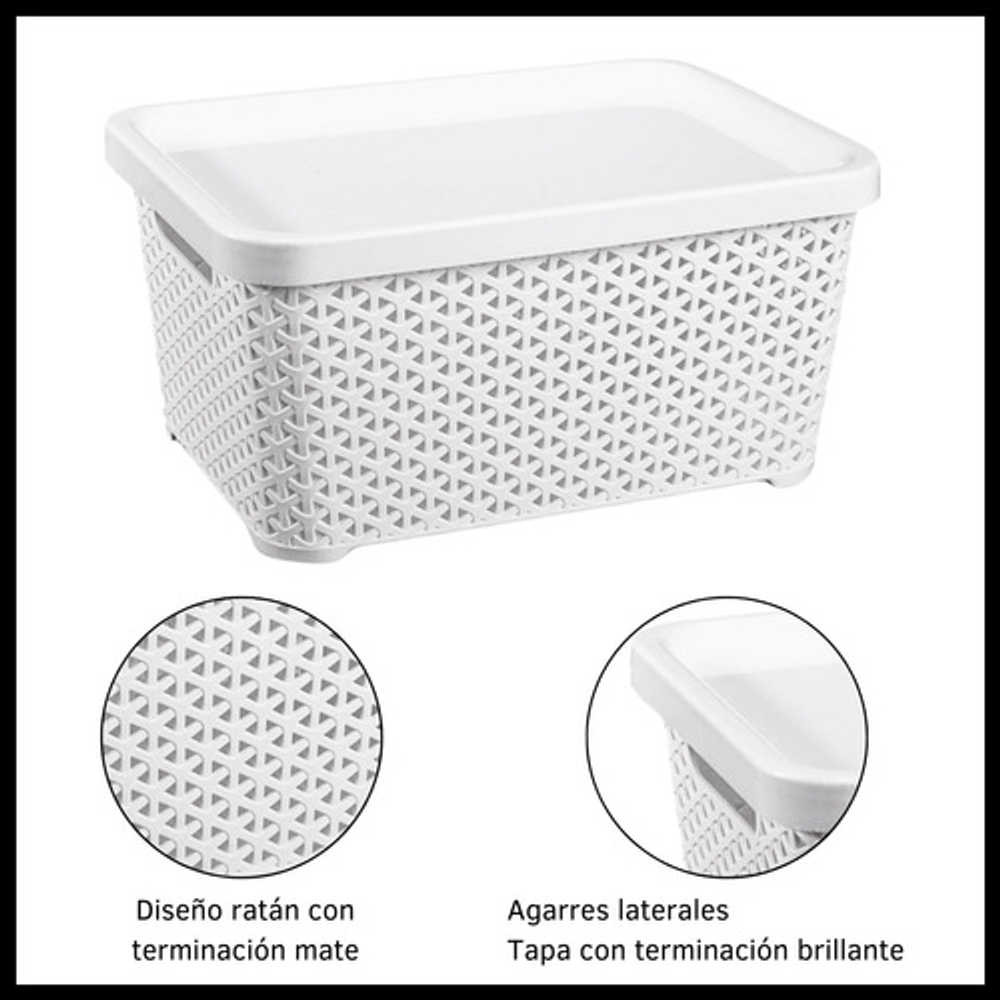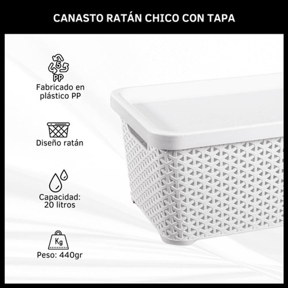 CANASTO DE PLÁSTICO SIMIL RATAN CHICO CON TAPA