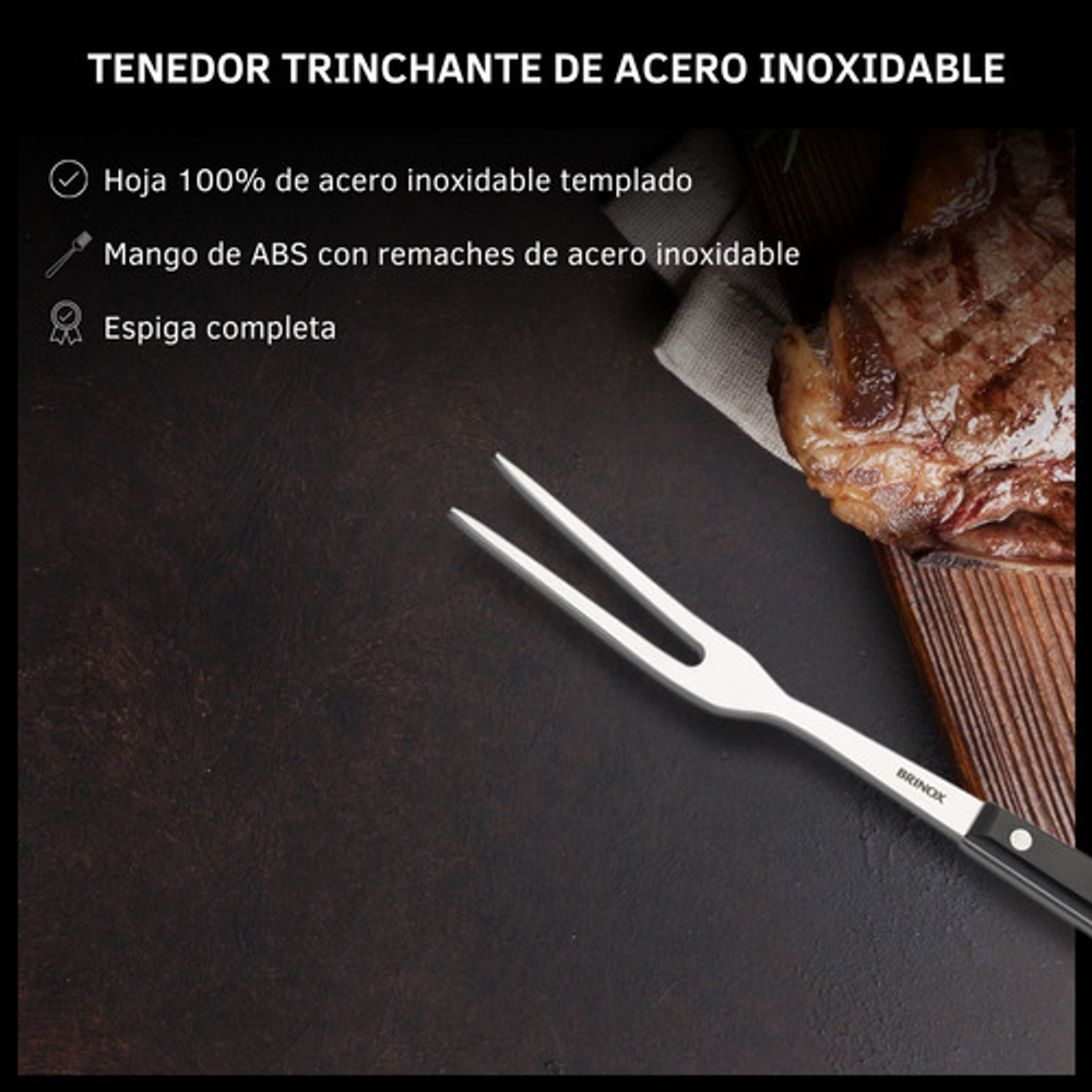 TENEDOR TRINCHANTE PARA CARNE DE ACERO INOXIDABLE Y MANGO ABS. LÍNEA INFINITY BRINOX.