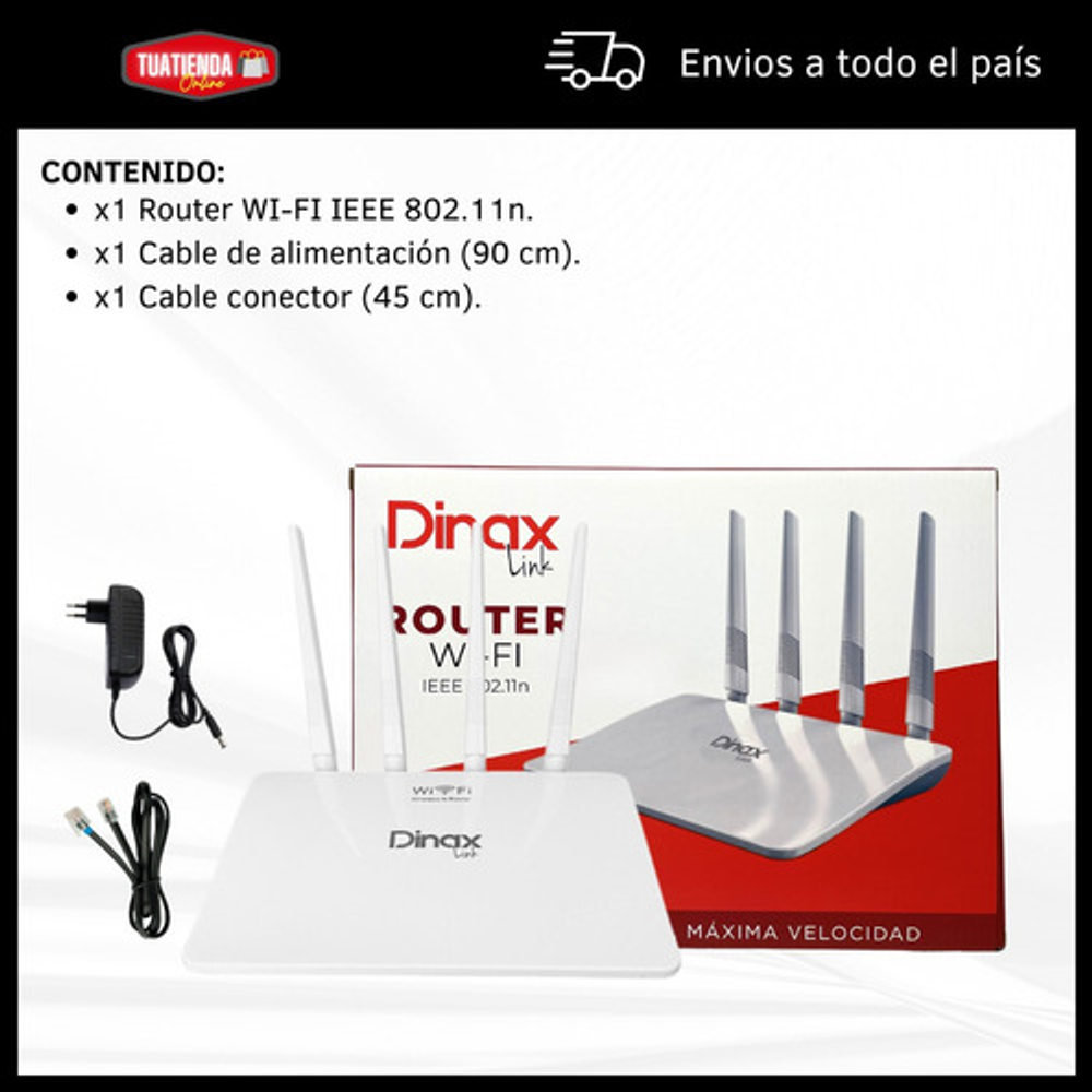 4 antenas 5dBi que permiten alcanzar áreas más amplias dentro de tu hogar u oficina.