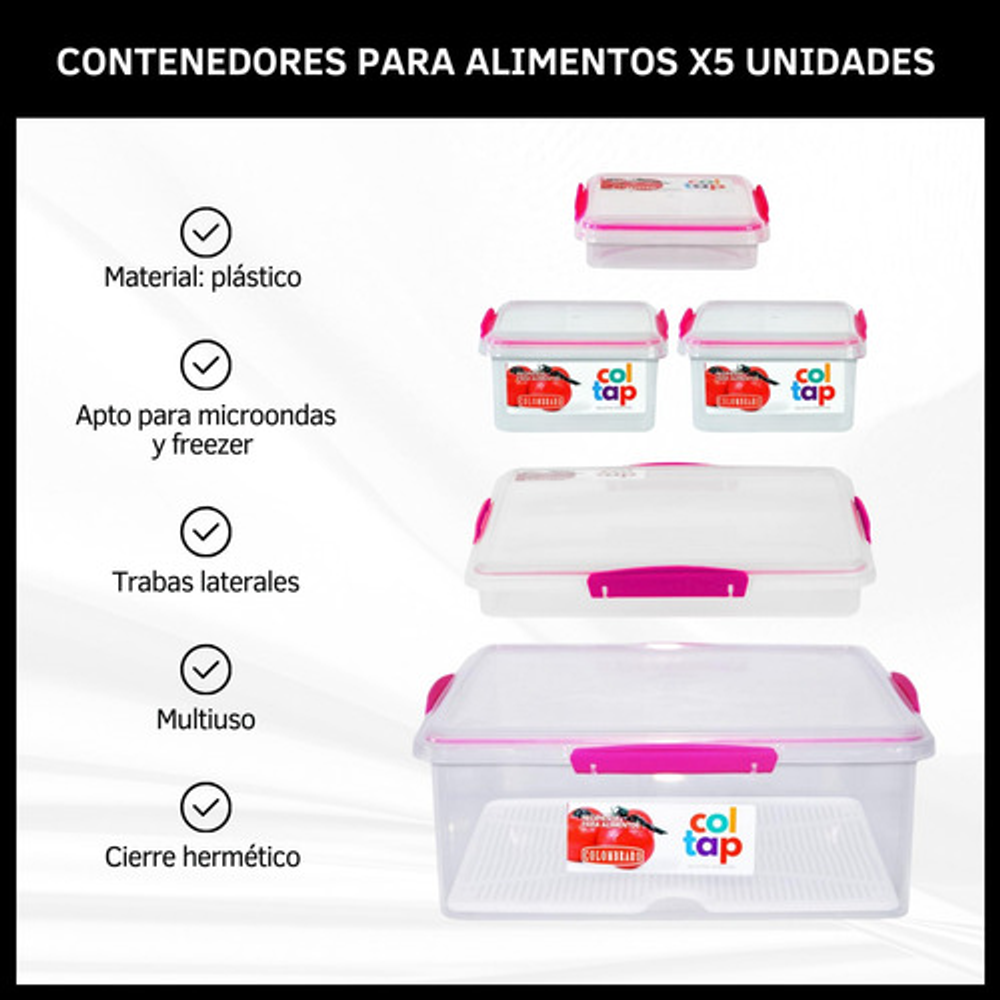 RECIPIENTES PARA ALIMENTOS COLTAP COLOMBRARO X 5 UNIDADES