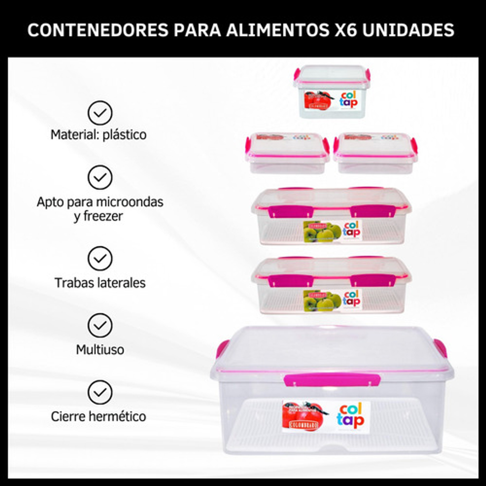 RECIPIENTES PARA ALIMENTOS COLTAP COLOMBRARO X6 UNIDADES