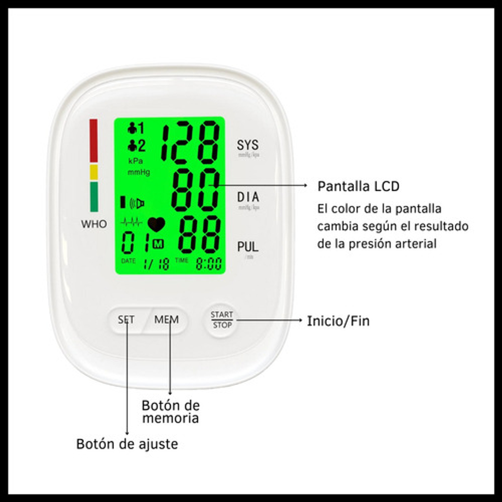 Pantalla LCD (Cambia de color según el resultado de la presión arterial)