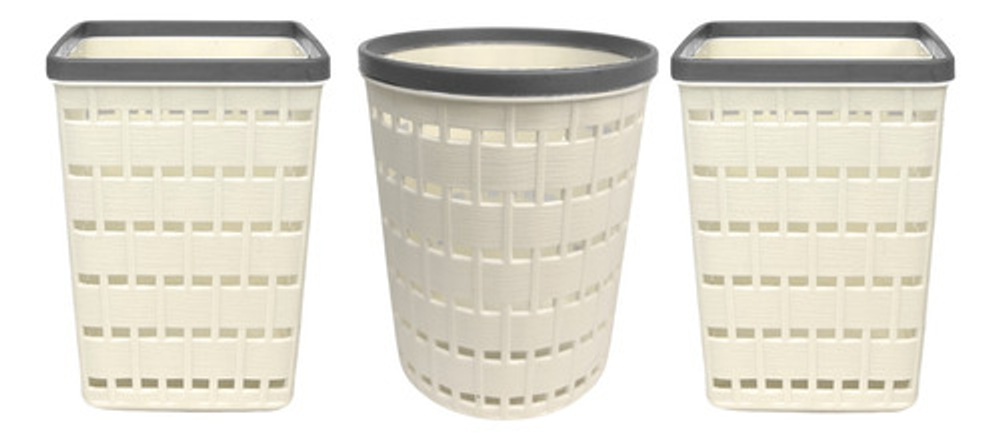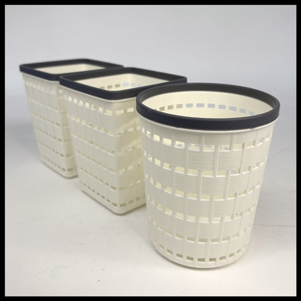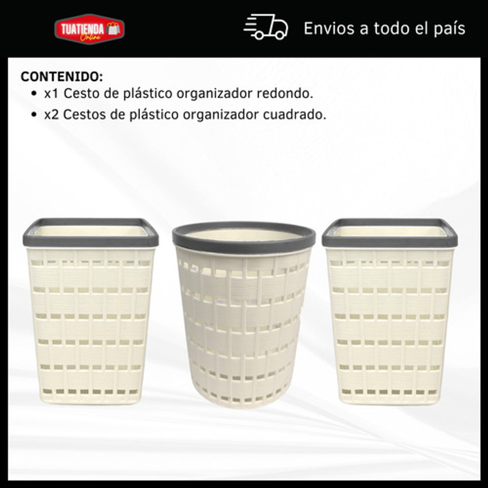 Incluye: -x1 Canasto organizador de plástico redondo. -x2 Canastos organizadores de plástico cuadrados.