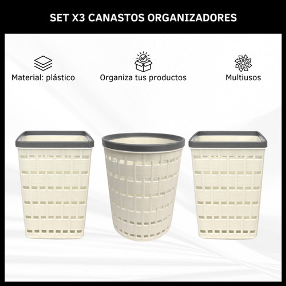 SET X3 CANASTOS ORGANIZADORES DE PLÁSTICO