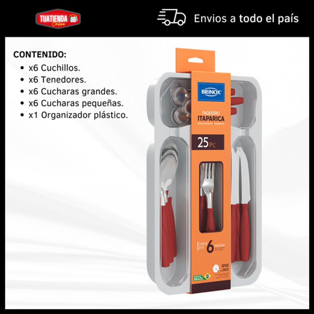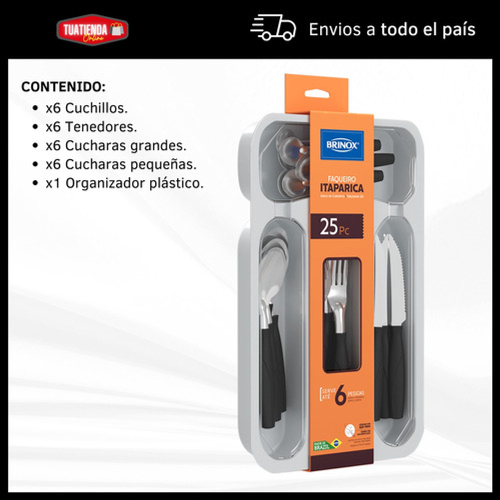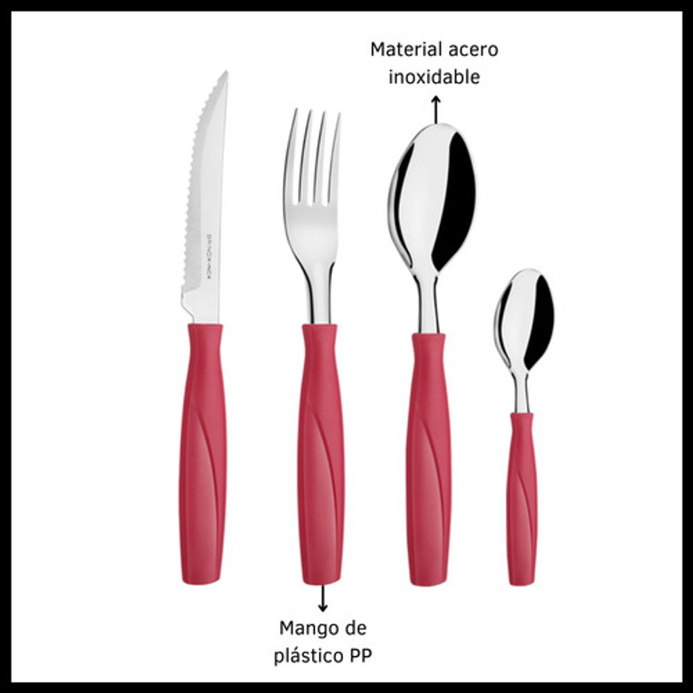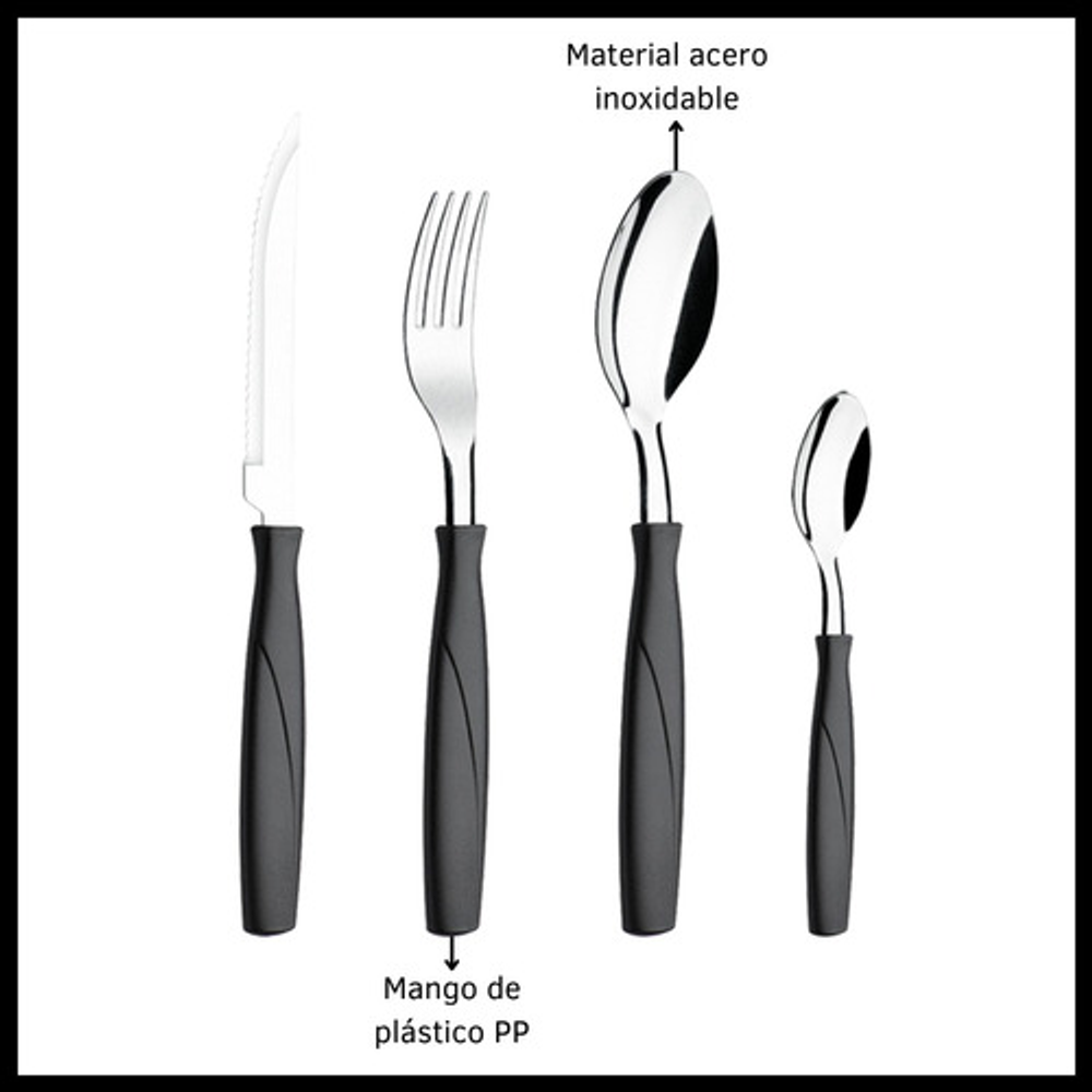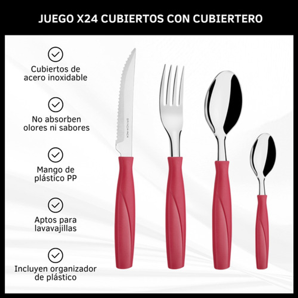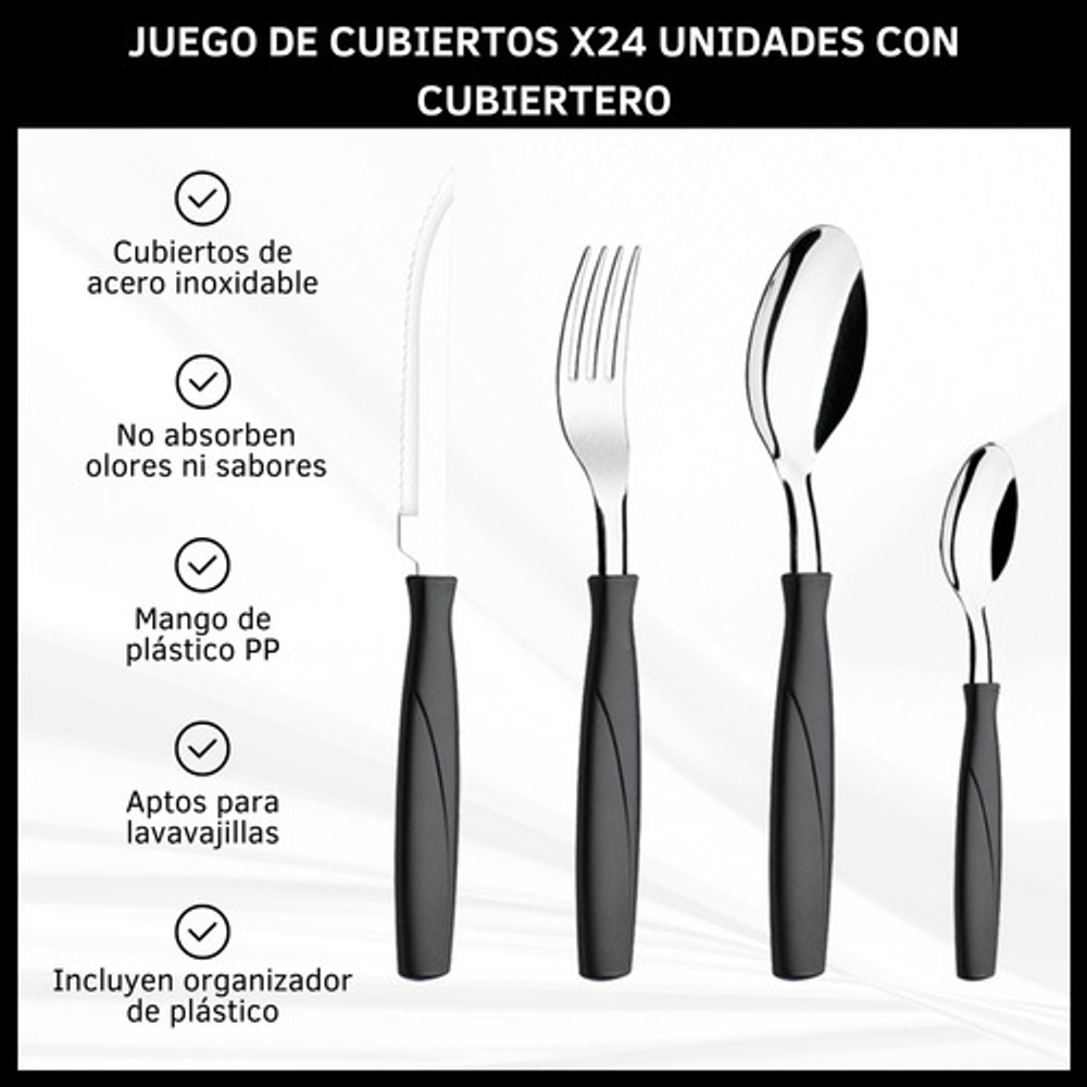 SET X24 CUBIERTOS DE ACERO INOXIDABLE Y PLÁSTICO PP. INCLUYE CUBIERTERO ORGANIZADOR DE PLÁSTICO.