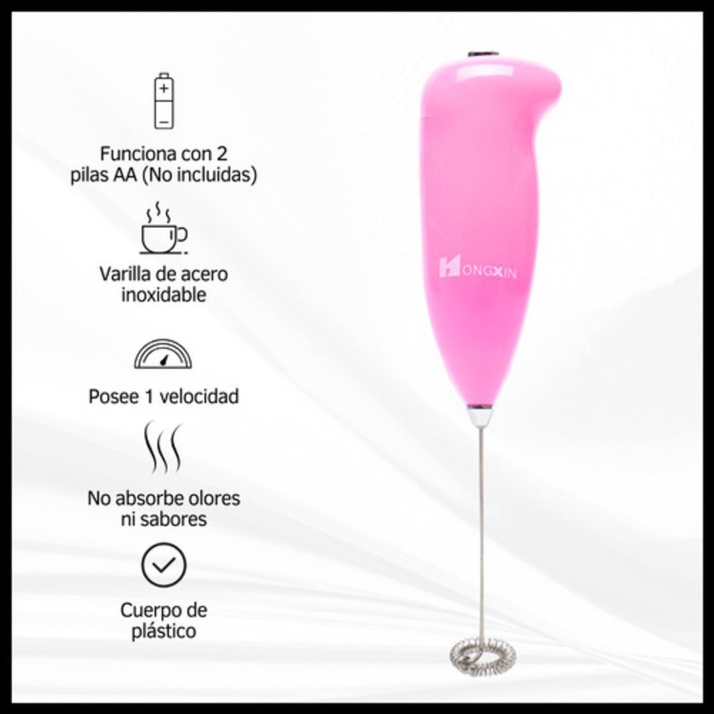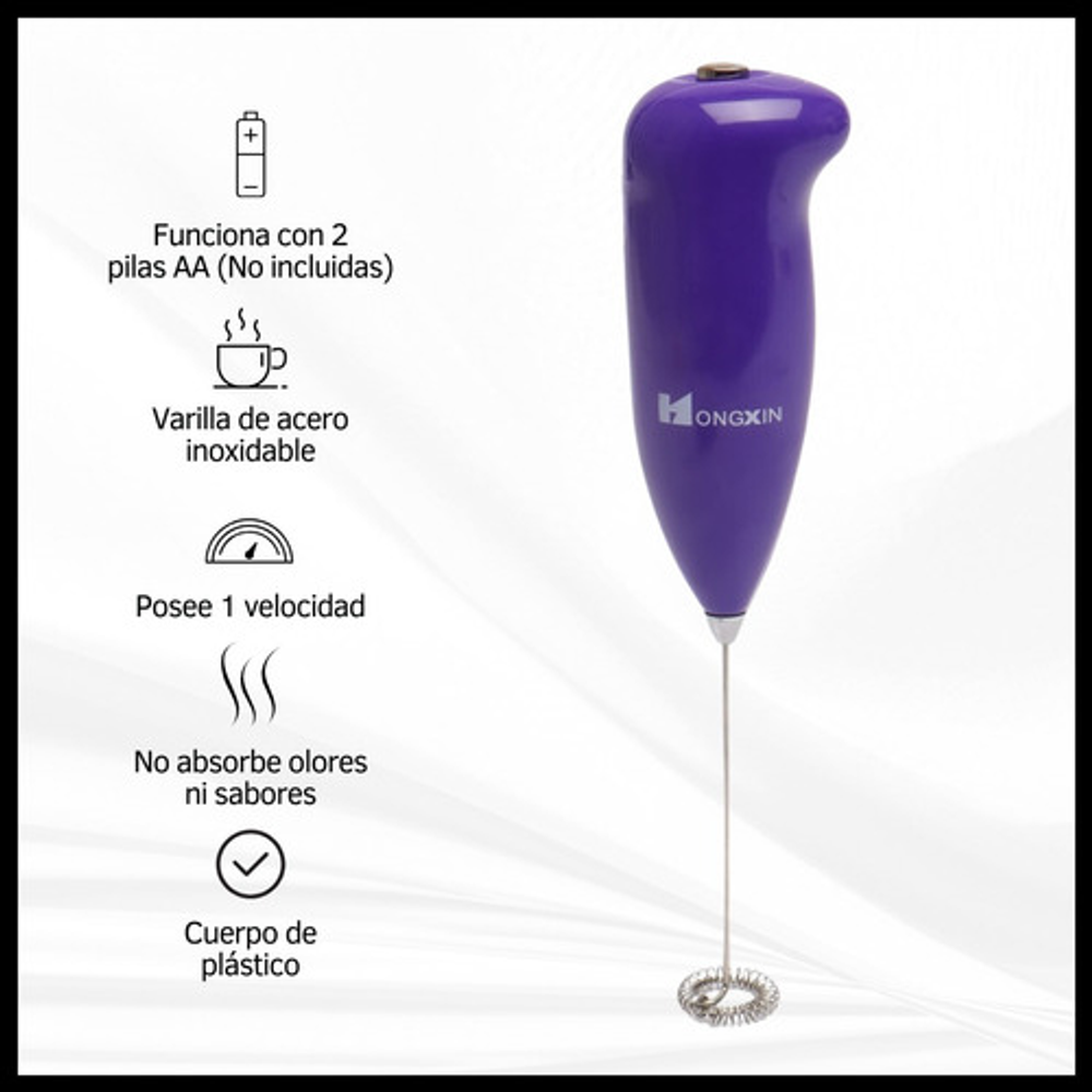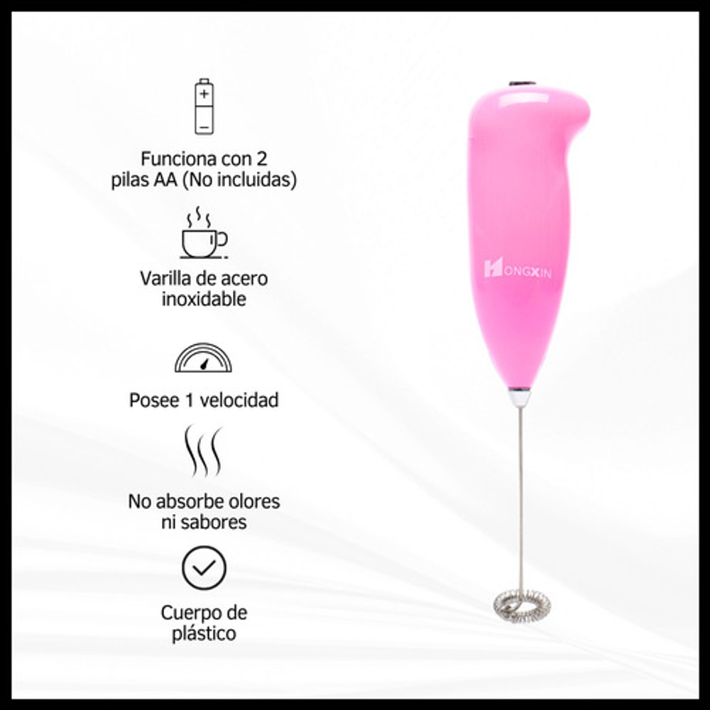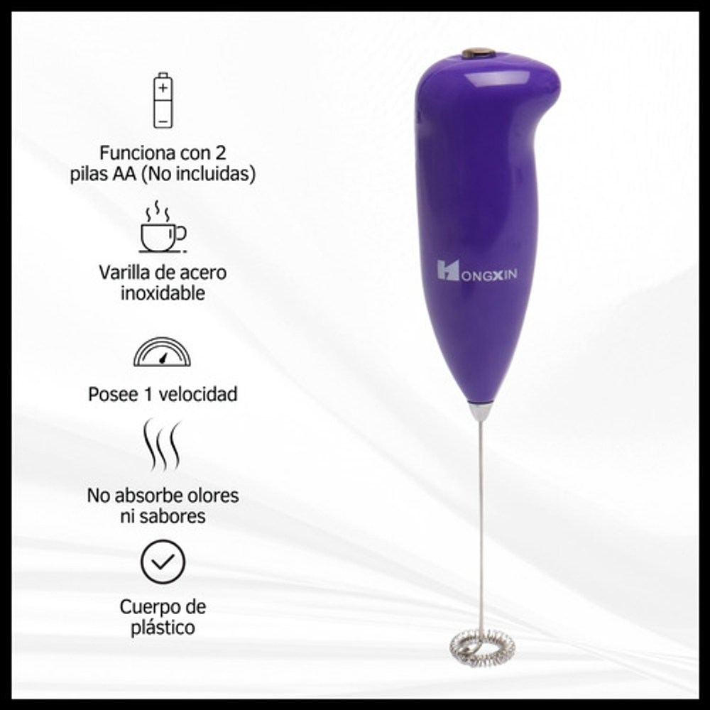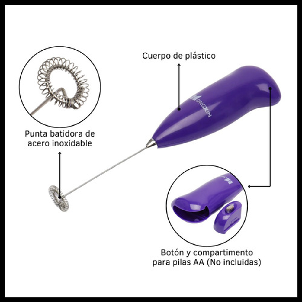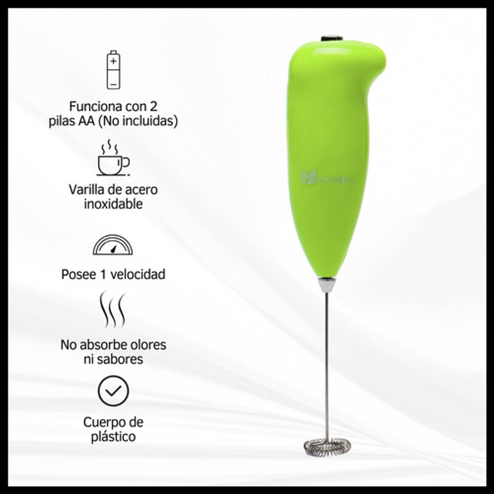 BATIDOR MANUAL: • Mango ergonómico • Varilla de acero inoxidable • Funciona con 2 pilas AA (no incluidas)