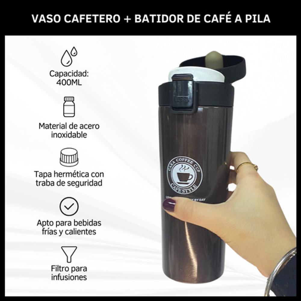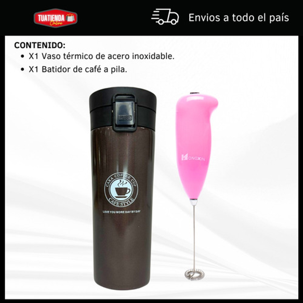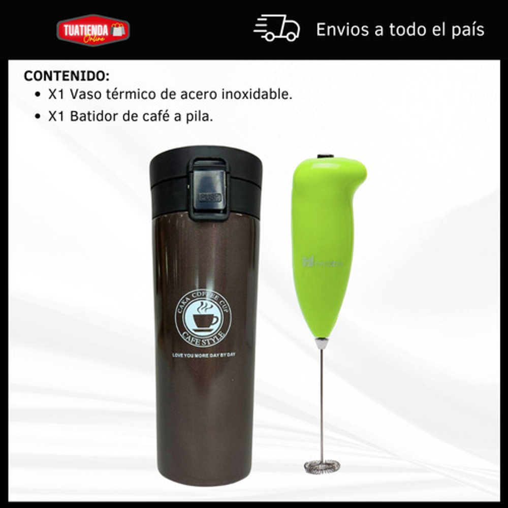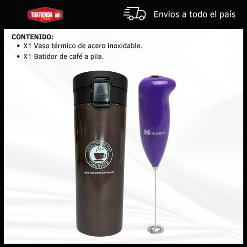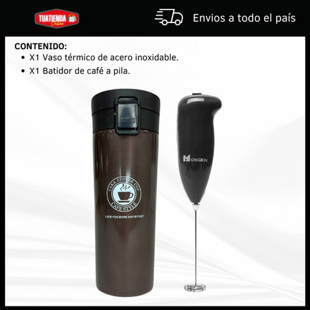 El combo incluye: • x1 Vaso cafetero térmico hermético • x1 Batidor espumador