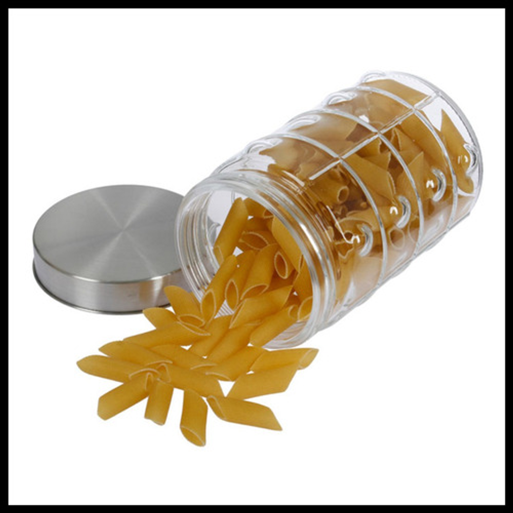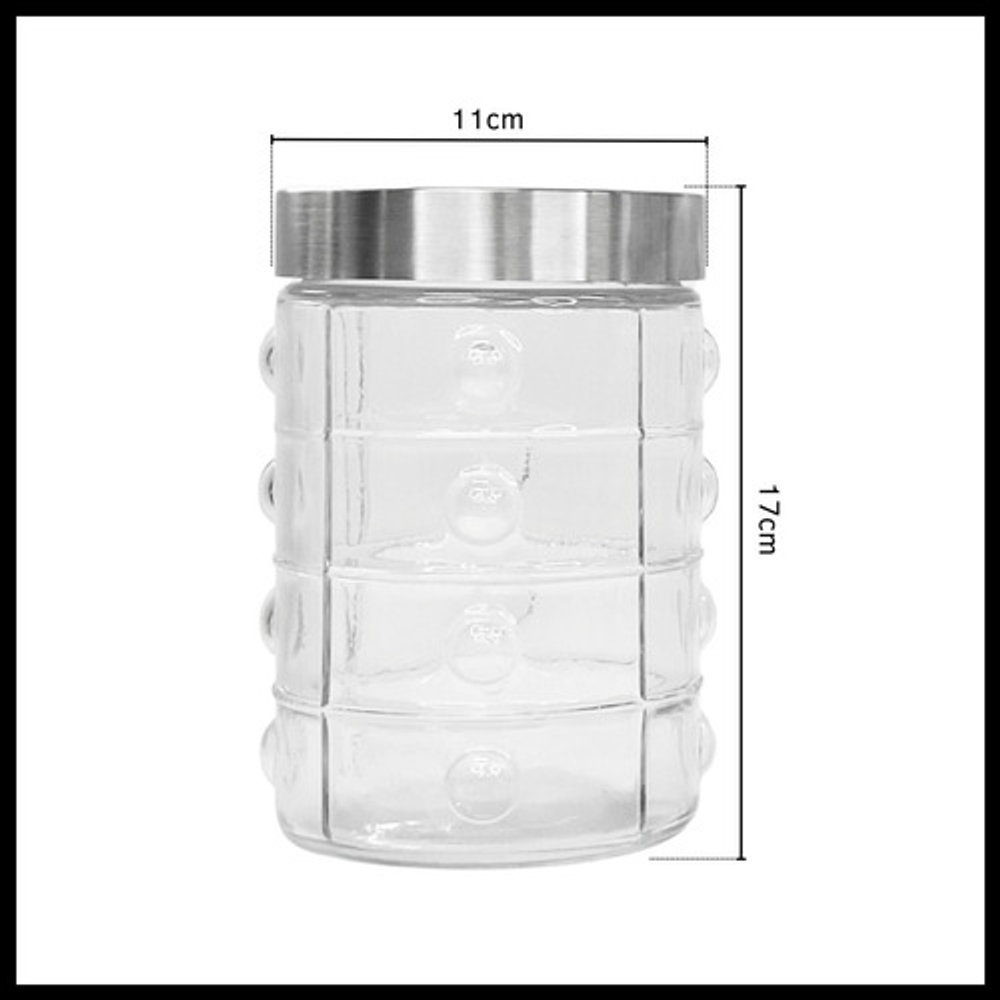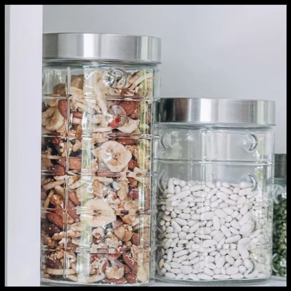 Características: • Capacidad: 1100ml. • Diseño transparente. • Tapa hermética a rosca. • Fabricado con vidrio de alta calidad. • Dimensiones: 17 cm de altura y 11 cm de ancho. • Para guardar alimentos secos como arroz, pasta, granos, cereales, y mucho más.