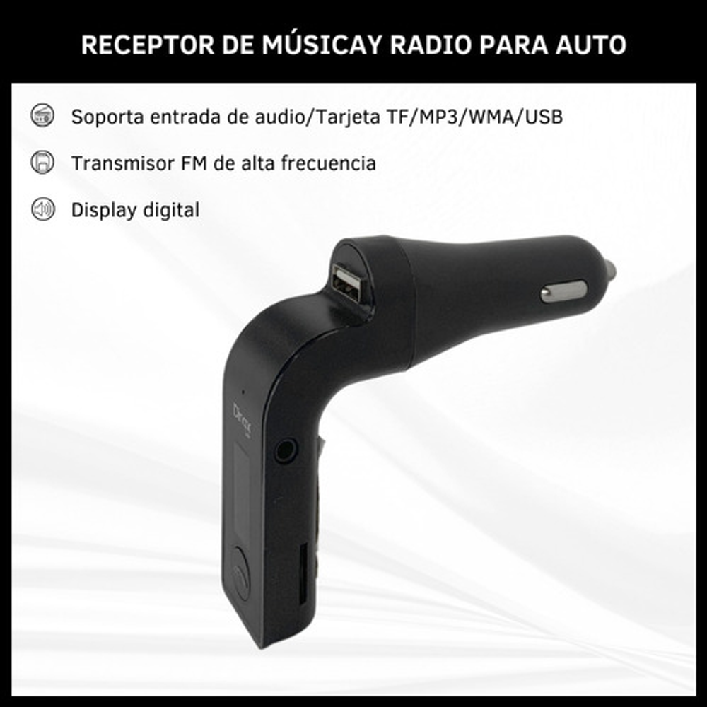 Este Receptor Bluetooth para Auto optimiza tu experiencia de manejo. Cuenta con una tecla para responder llamadas, conector dual para encendedor 12v/24v, pantalla LED informativa, puerto aux-in de 3.5mm, micrófono integrado y puerto USB. Permite disfrutar de llamadas con manos libres, streaming inalámbrico de música y conectividad versátil, todo diseñado para mantener tu seguridad y comodidad en cada viaje.
