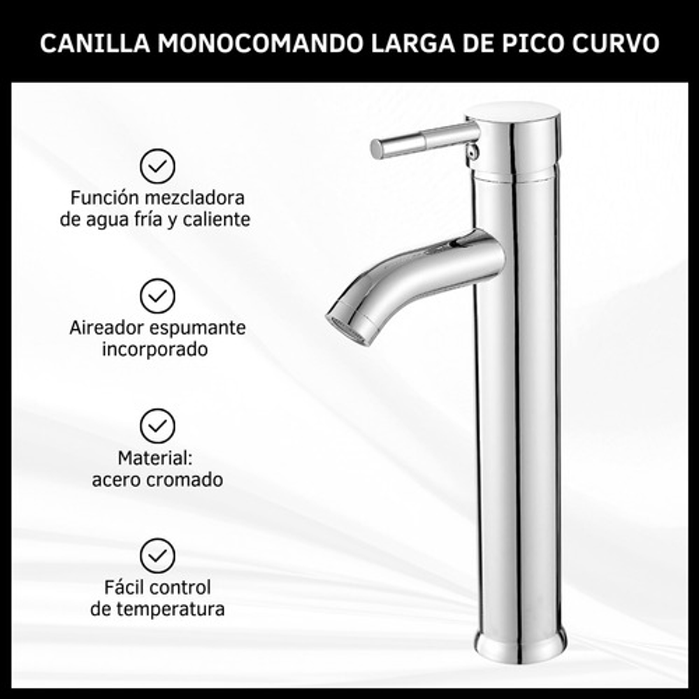 CANILLA MONOCOMANDO LARGA DE PICO CURVO