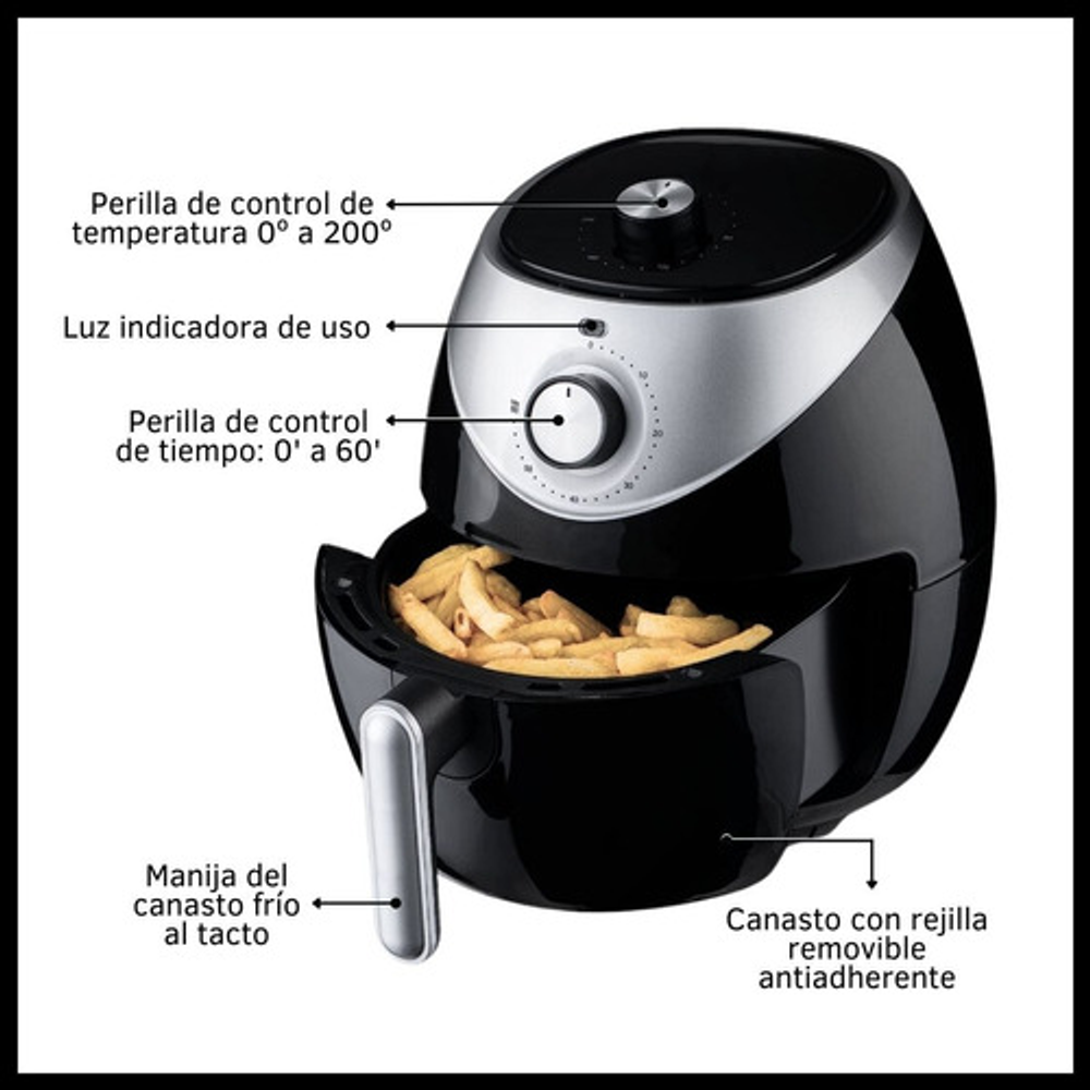 FREIDORA DE AIRE SIN ACEITE 1 CANASTO 2L DINAX https://articulo.mercadolibre.com.ar/MLA-1652513228-freidora-de-aire-electrica-sin-aceite-2l-temporizador-1000w-_JM