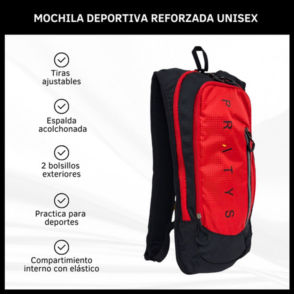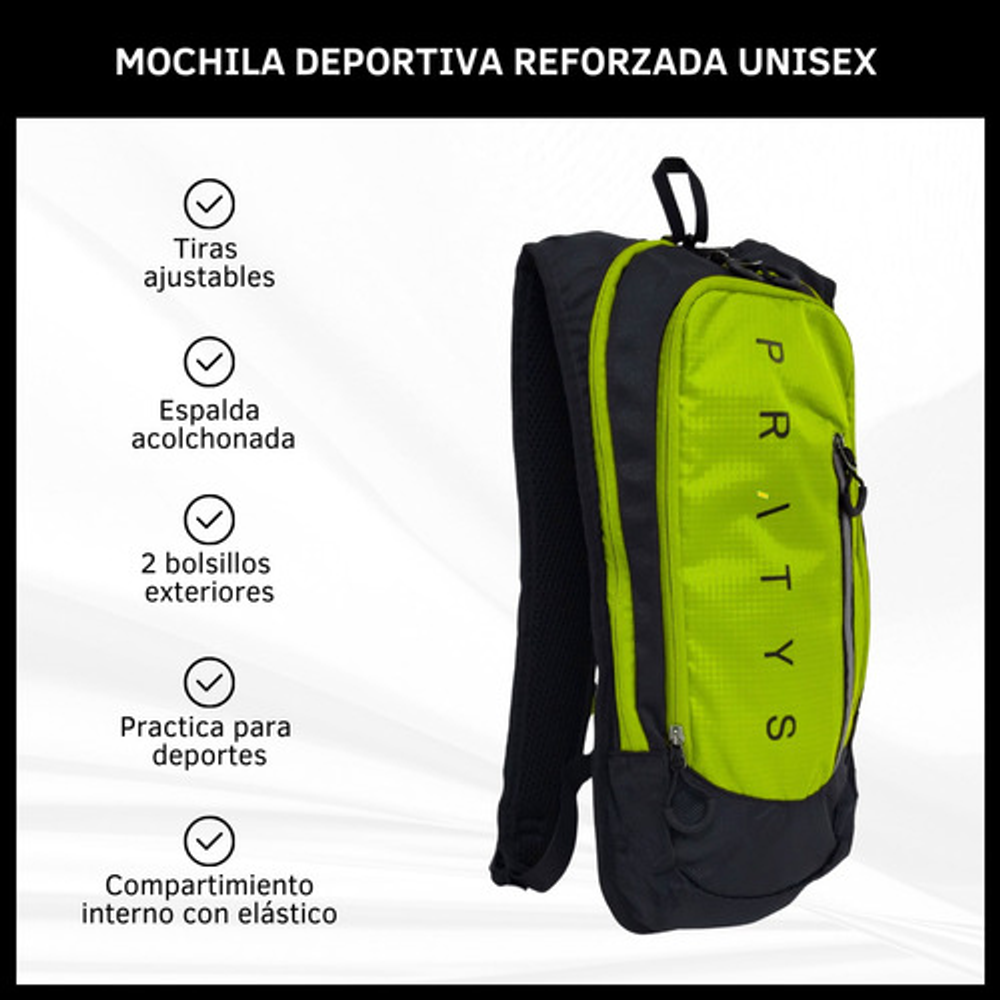Características: • Tiras ajustables. • 2 bolsillos exteriores. • Espalda acolchonada. • Practica para deportes • Ideal para tus actividades deportivas. • Compartimiento interno con elástico. • Diseñada para la comodidad y practicidad. • Su peso es super liviano permitiendo moverte sin restricciones.