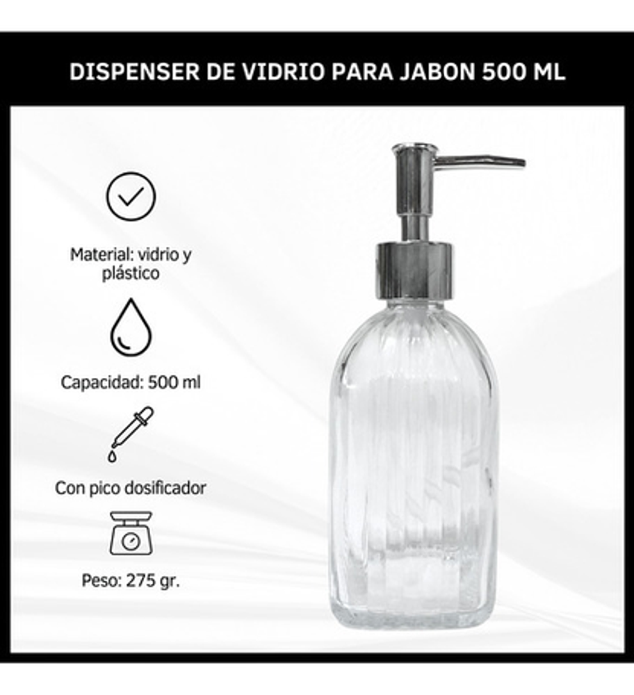 DISPENSER DE VIDRIO PARA JABÓN LÍQUIDO