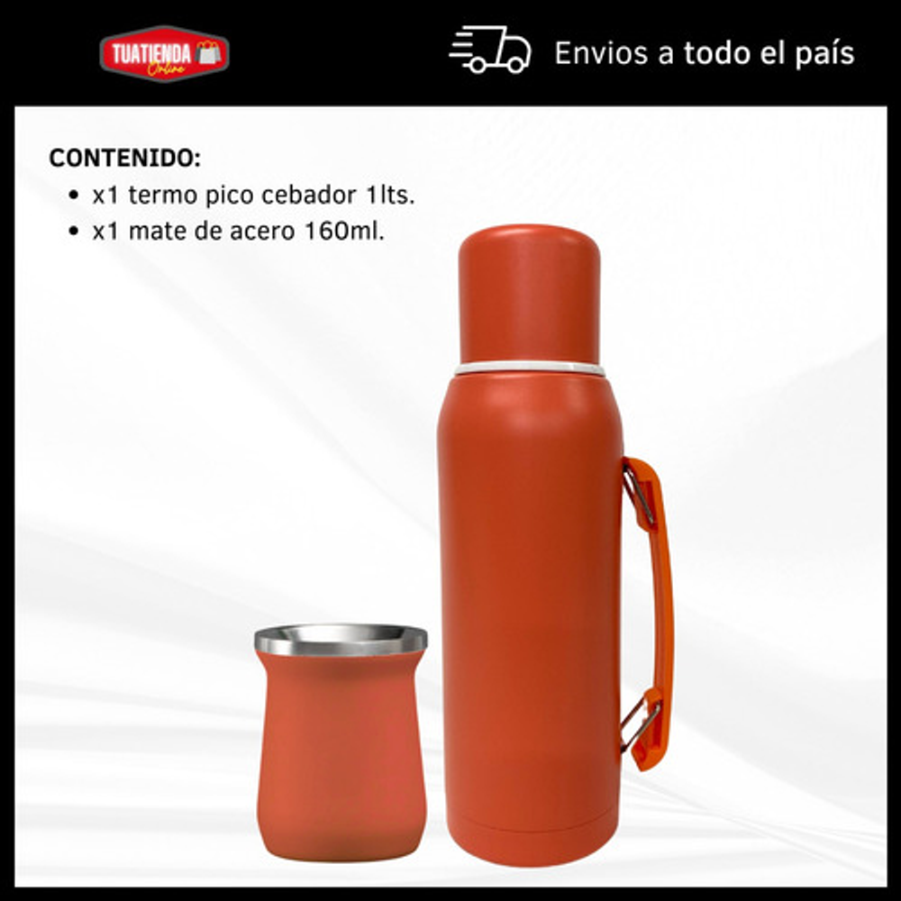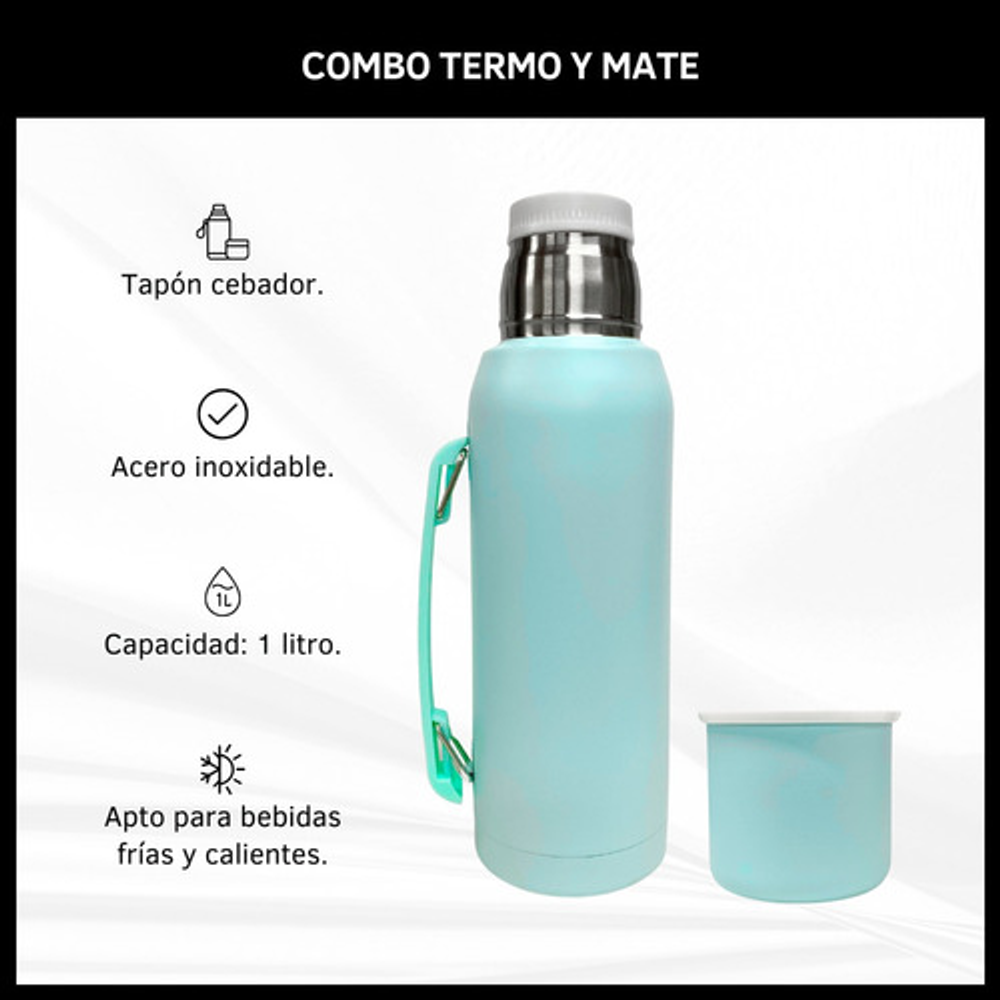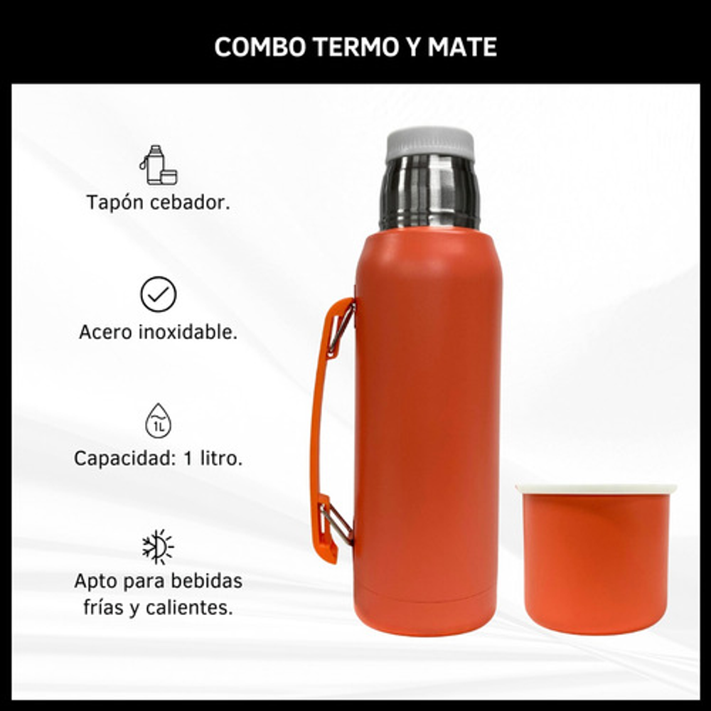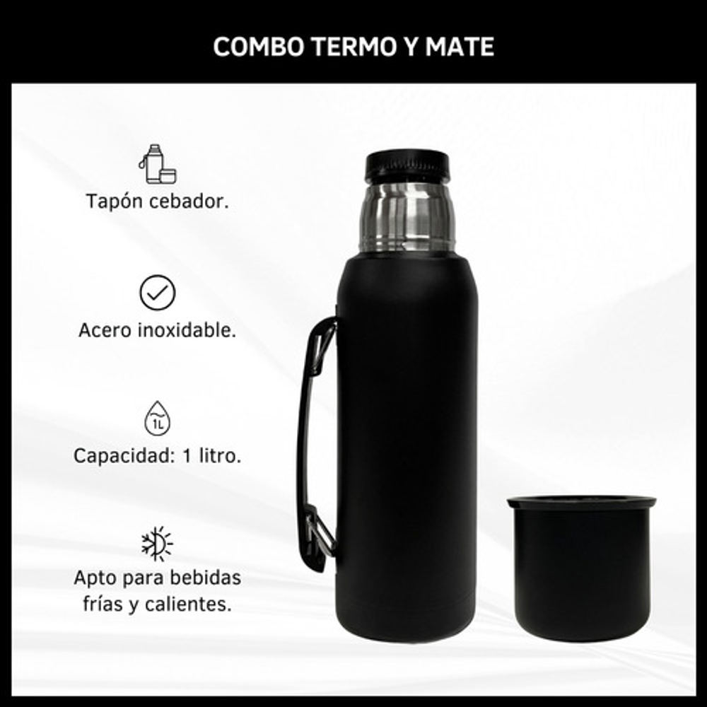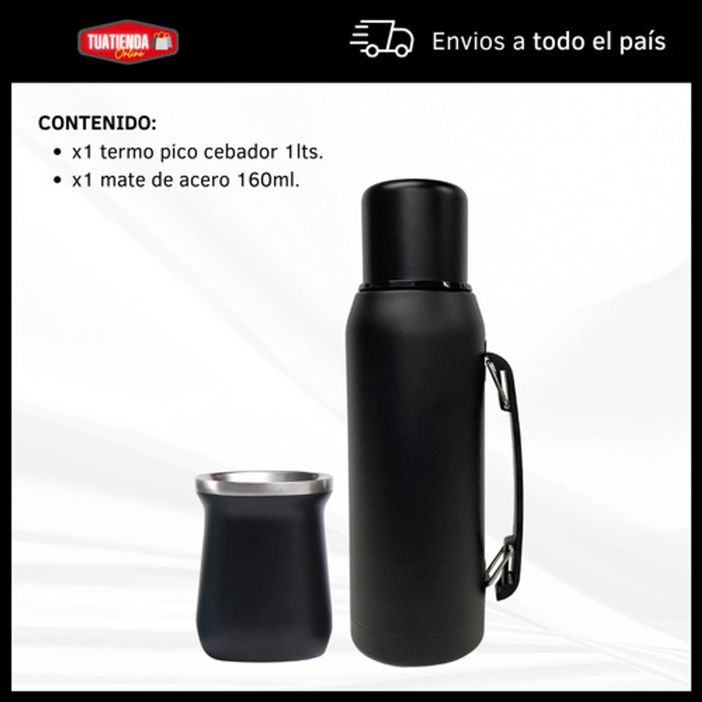 COMBO TERMO 1 LITRO ACERO INOXIDABLE + MATE 160ML.