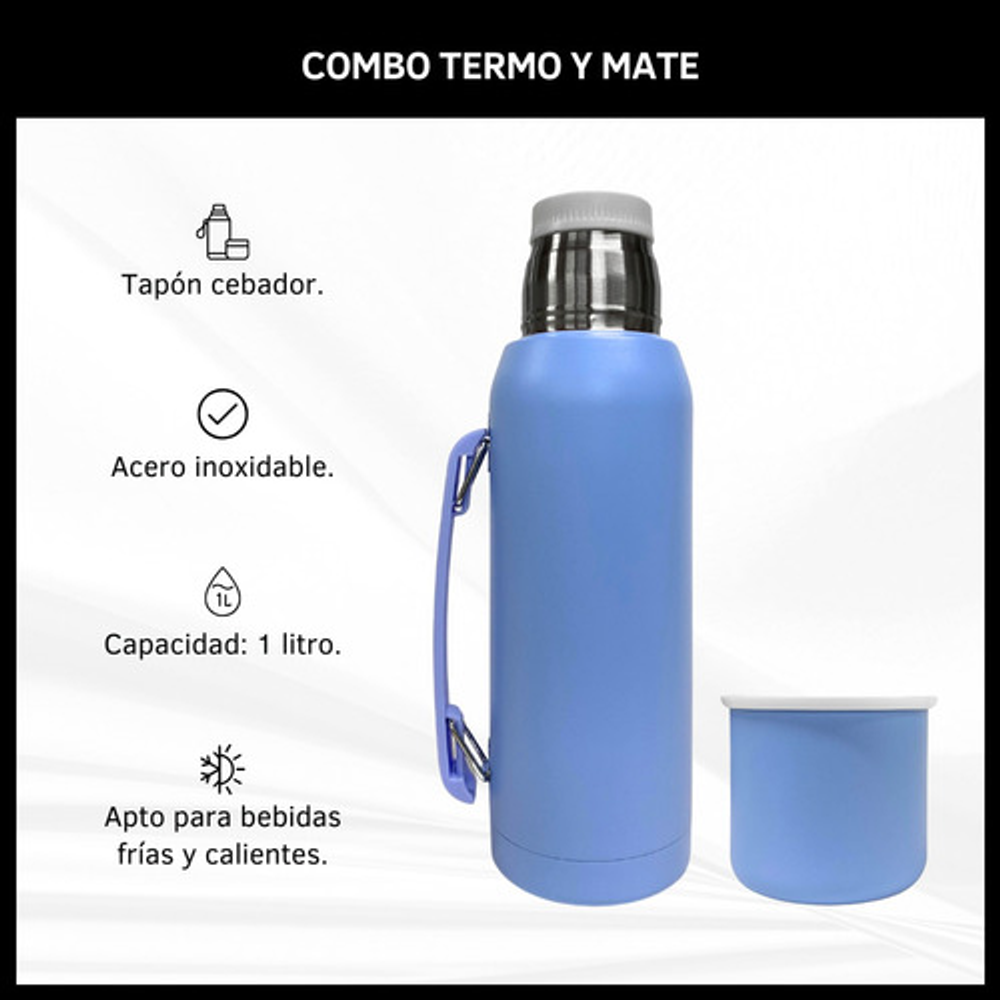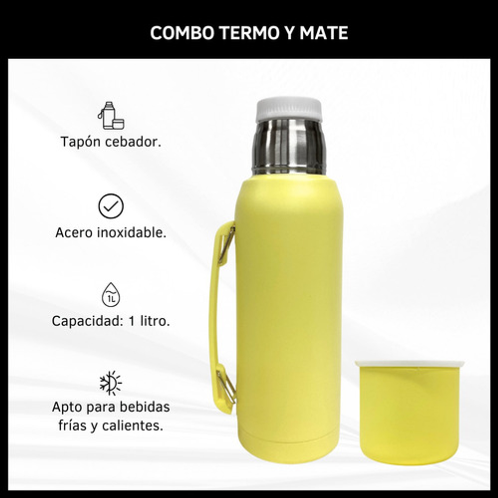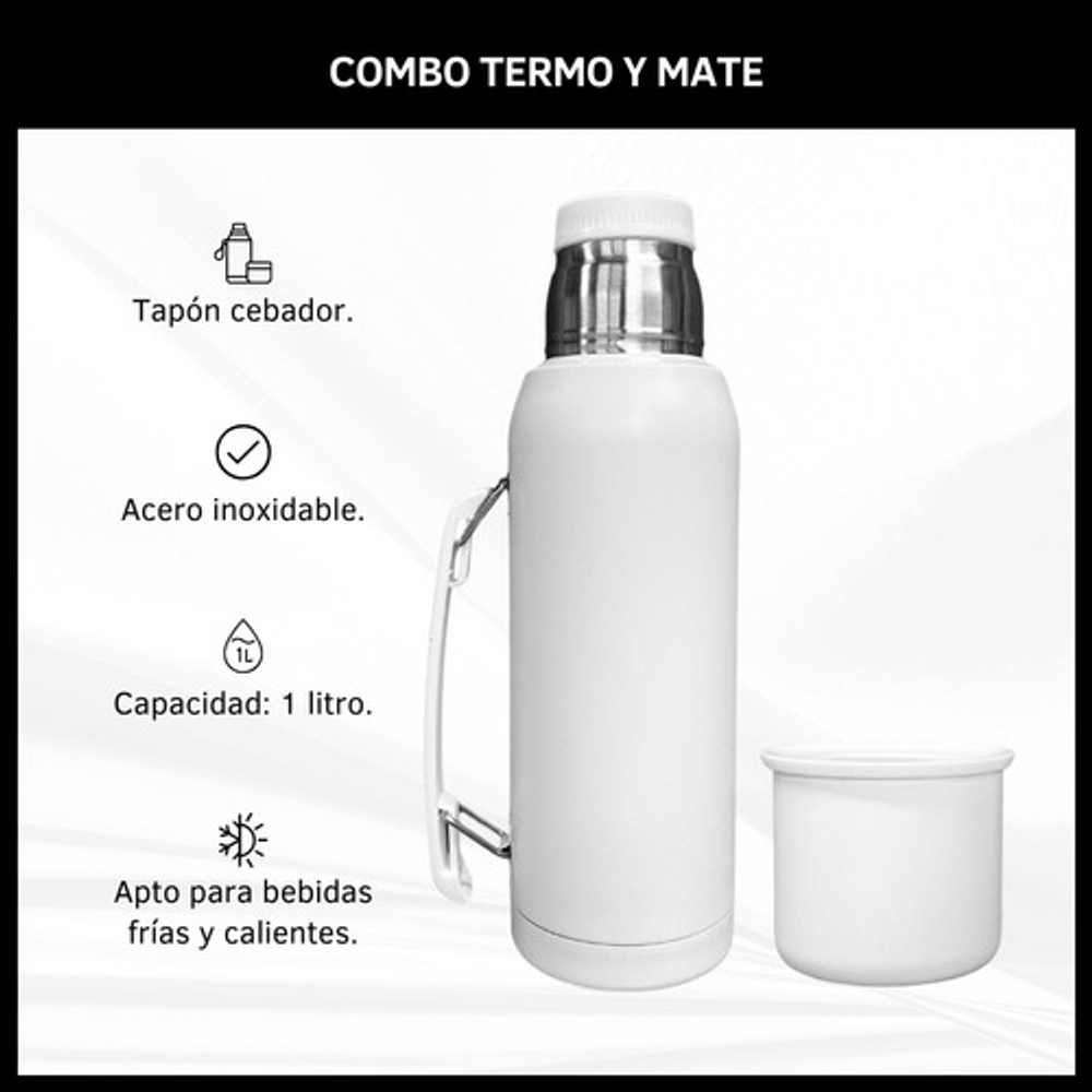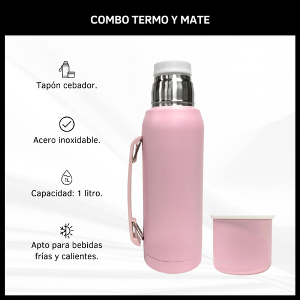 COMBO TERMO 1 LITRO ACERO INOXIDABLE + MATE 160ML.