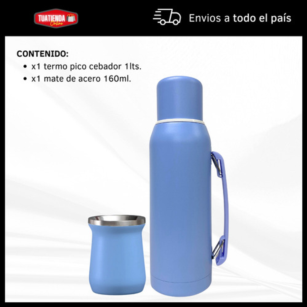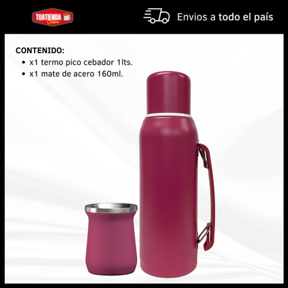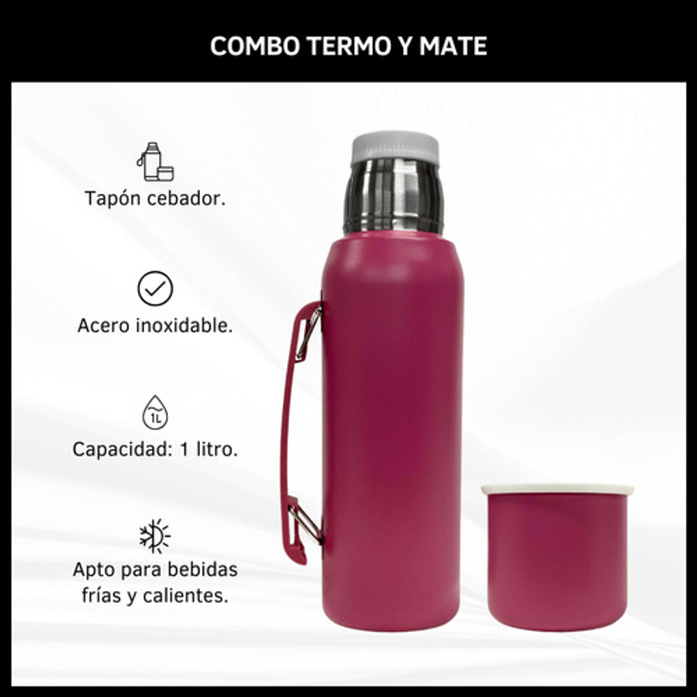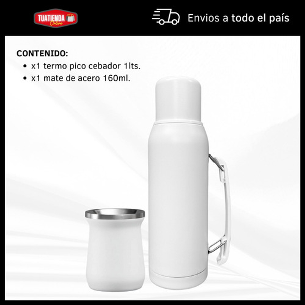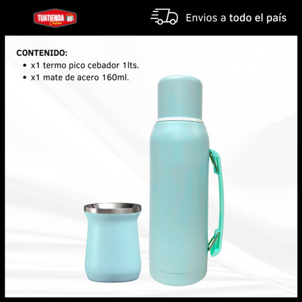 COMBO TERMO 1 LITRO ACERO INOXIDABLE + MATE 160ML.