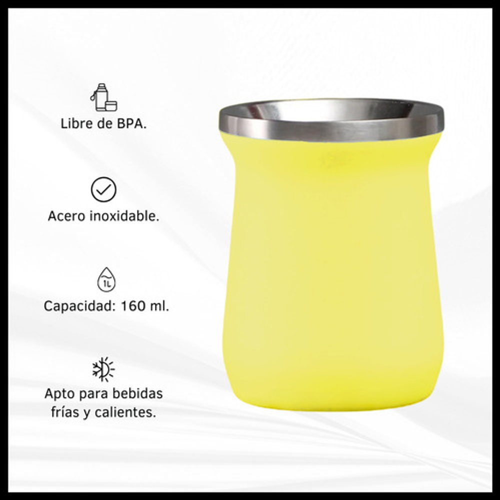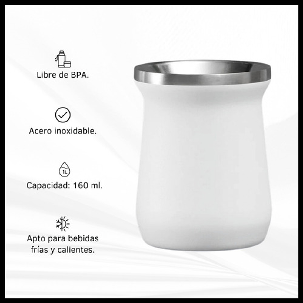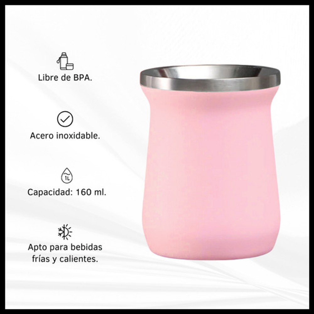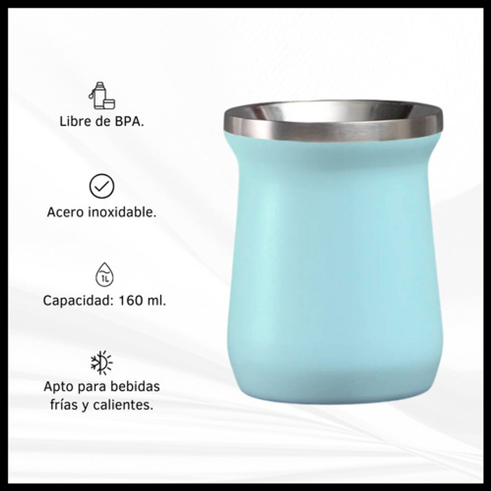 Características mate: -Boquilla con diseño para introducir hielo. -Material: Acero inoxidable. -Capacidad: 160 ml. -Apto frio/calor.