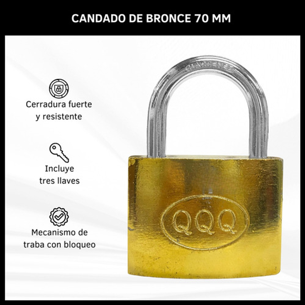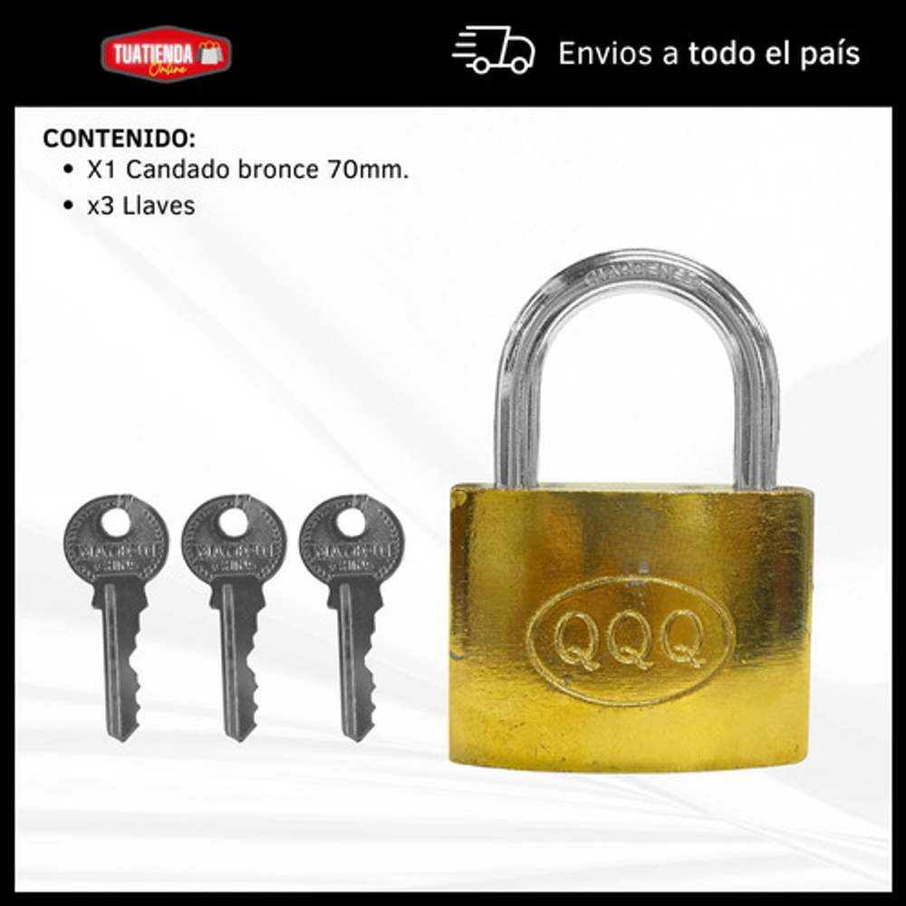 CANDADO DE SEGURIDAD BRONCE PESADO 70 MM + TRES LLAVES