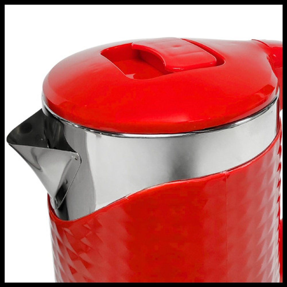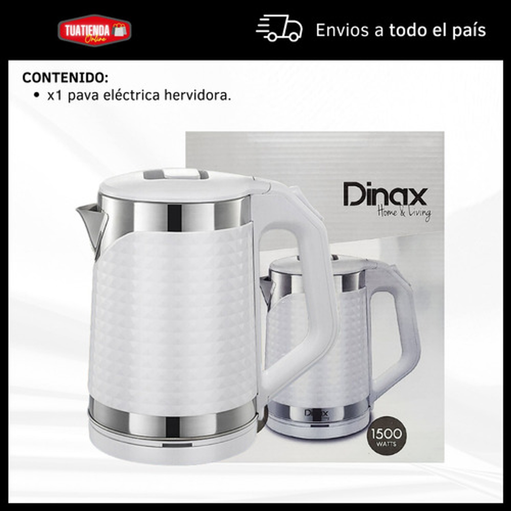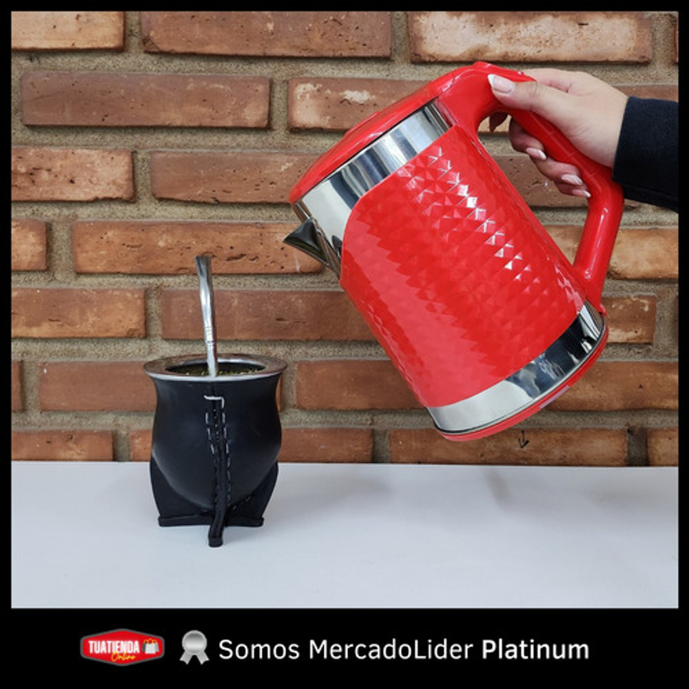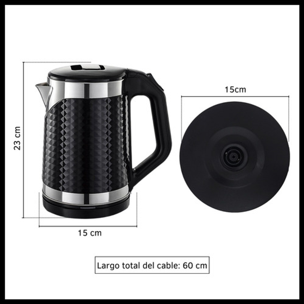 Características: • Potencia: 1500W. • Capacidad: 1.8lts. • Tapa antiderrame. • Base giratoria 360°. • Corte automático al hervir. • Luz indicadora de encendido. • Material: acero inoxidable y plástico.