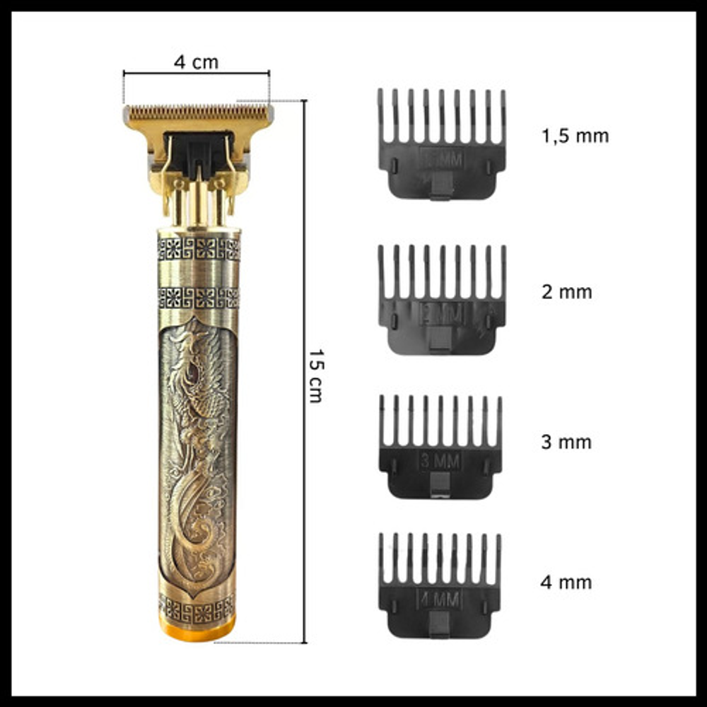 Incluye cuatro peines intercambiables. (1,5mm/2mm/3mm/4mm).
