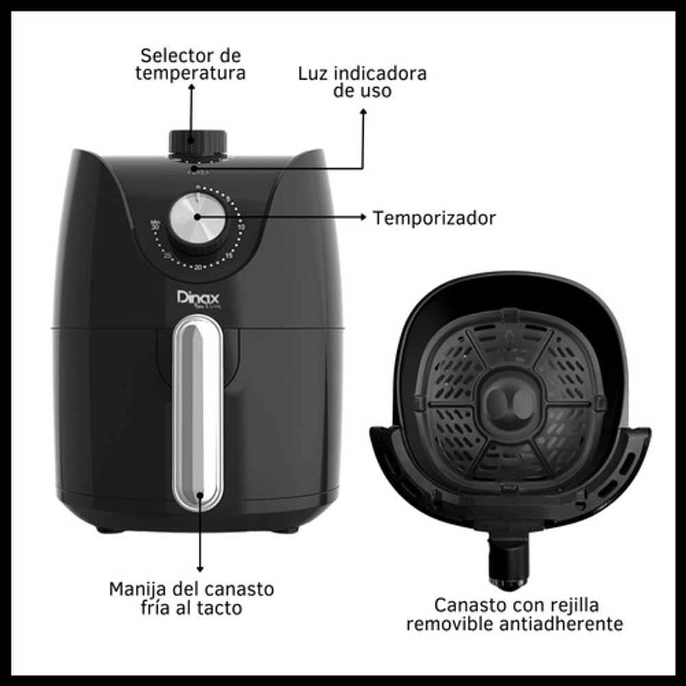 FREIDORA DE AIRE SIN ACEITE 1 CANASTO 2L DINAX