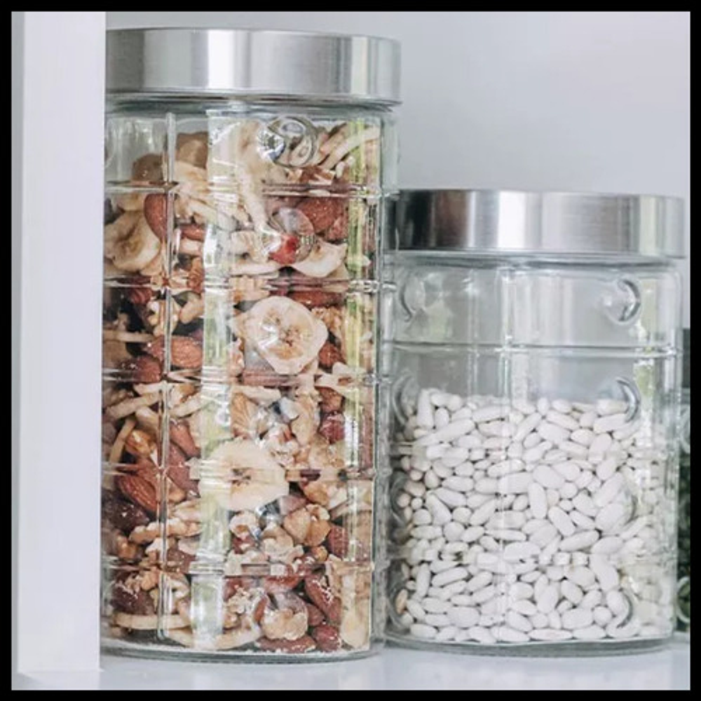 FRASCO DE VIDRIO CAPACIDAD DE 1000ML: https://articulo.mercadolibre.com.ar/MLA-1289274167-frasco-de-vidrio-chico-hermetico-tapa-a-rosca-acero-1100ml-_JM