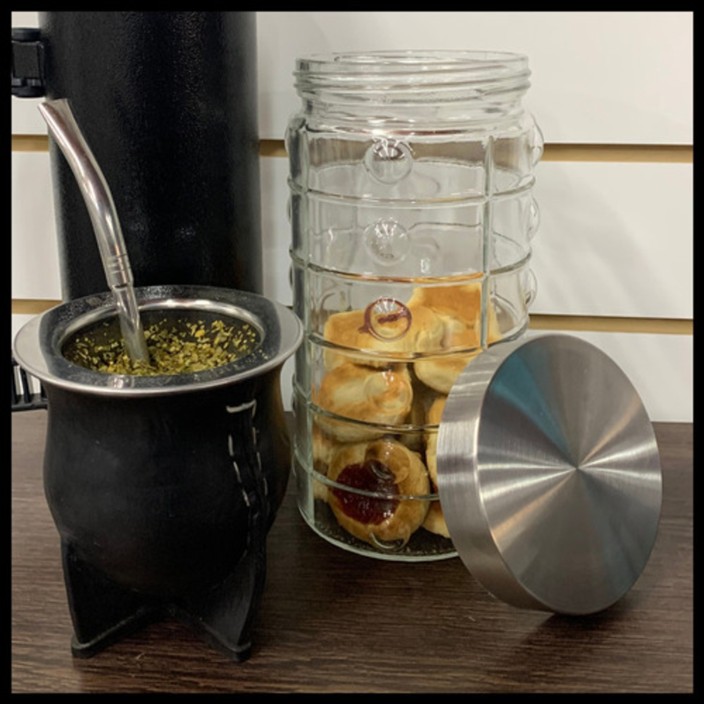 FRASCO DE VIDRIO MEDIANO HERMETICO CON TAPA A ROSCA DE ACERO DE 1600 ML