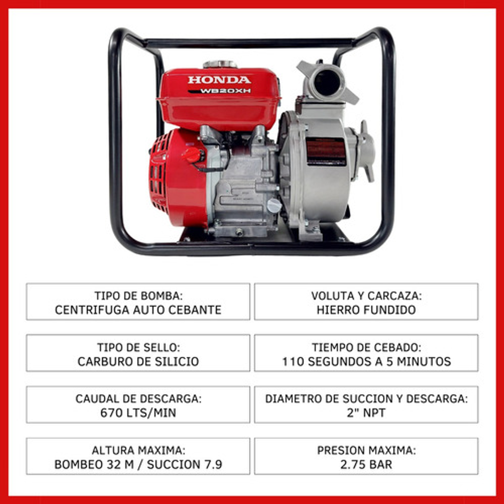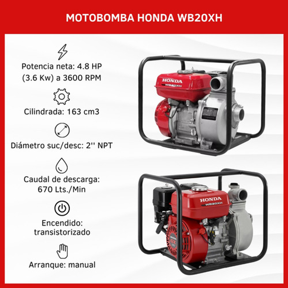 MOTOBOMBA DE AGUA HONDA WB20XH NAFTERA 4 TIEMPOS.