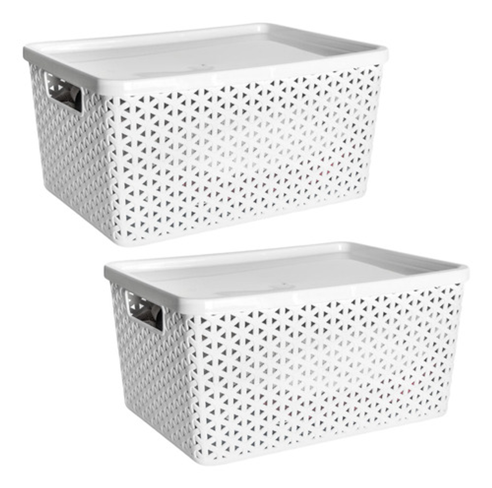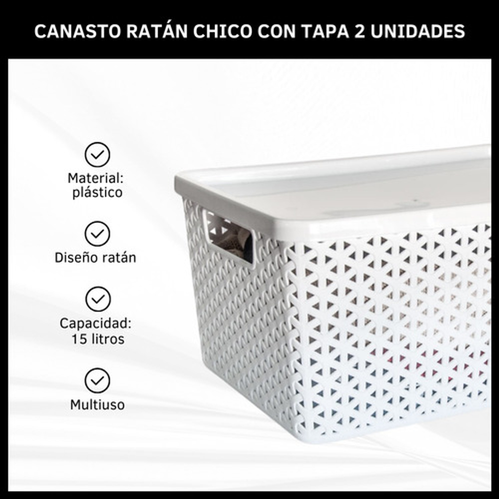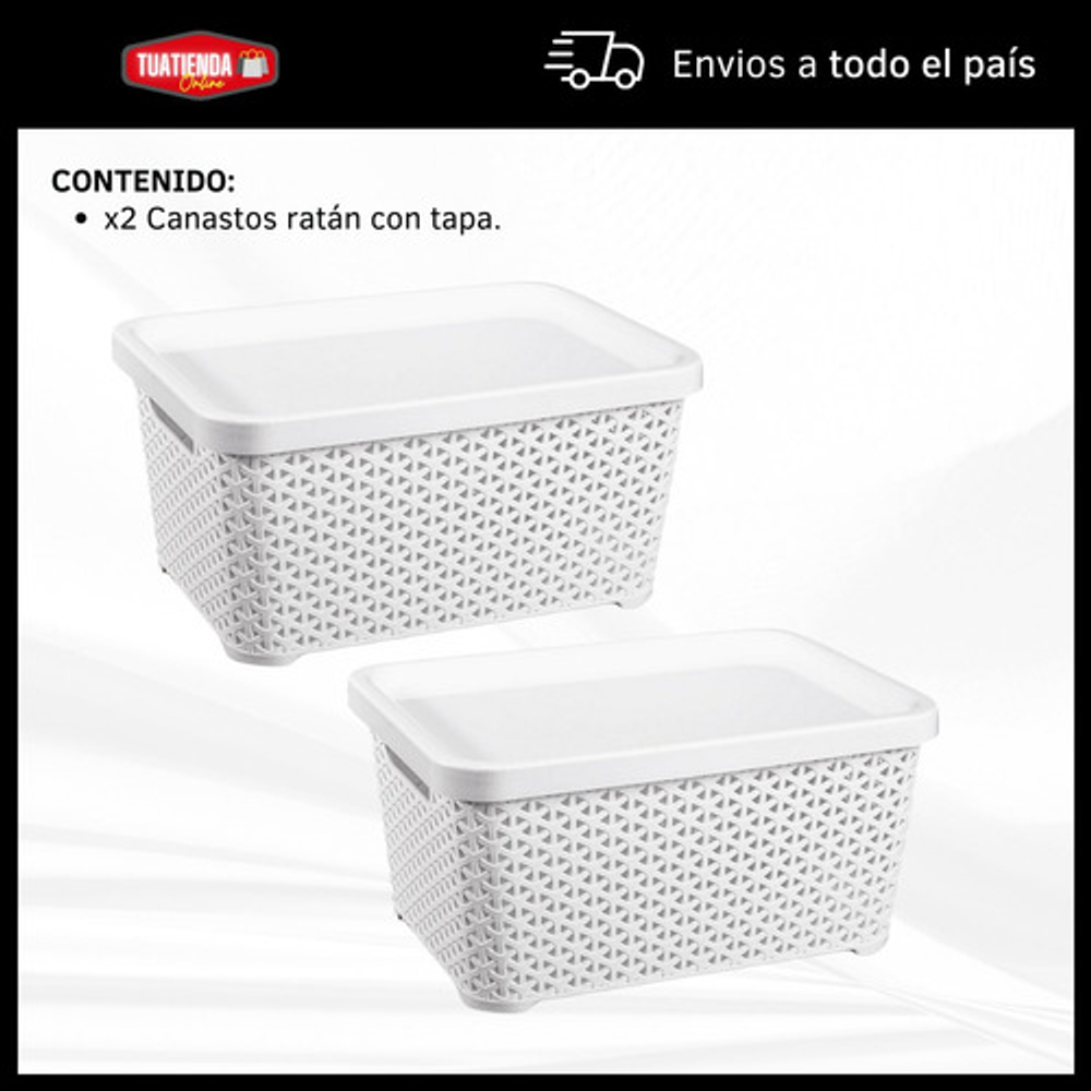 COMBO X2 CESTOS ORGANIZADORES DE PLÁSTICO CON TAPA ESTILO RATÁN