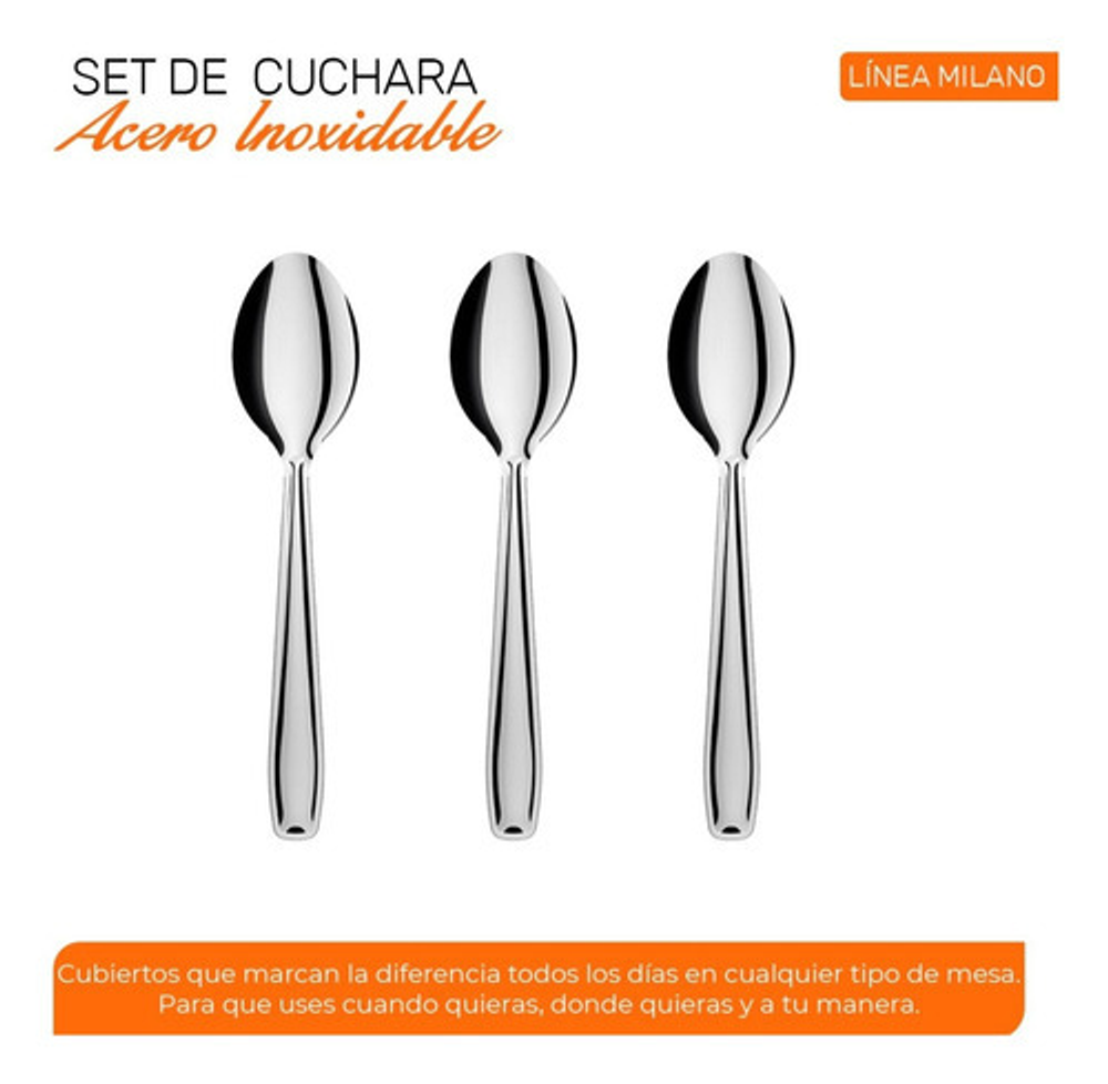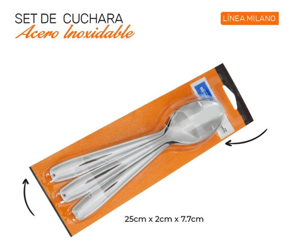 Eleva la elegancia de tu mesa con este set de 3 cucharas de mesa Brinox Milano. Fabricadas en acero inoxidable de alta calidad, estas cucharas son duraderas y resistentes, ideales para el uso diario. Su diseño sofisticado con mango plateado aporta un toque de distinción a cualquier ocasión, ya sea un desayuno tranquilo o una cena especial. Con un largo de 18.9 cm, son perfectas para disfrutar de tu postre, café o té favorito. Su formato de venta en pack te permite tener siempre a mano una cuchara extra, ya sea para recibir invitados o para reponer la que se perdió en el lavavajillas. No pierdas la oportunidad de agregar este toque de estilo a tu vajilla.
