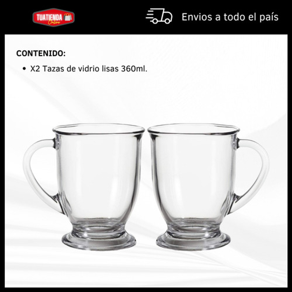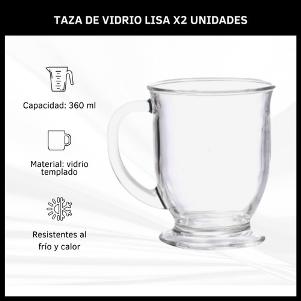 TAZA DE VIDRIO LISA X2 UNIDADES