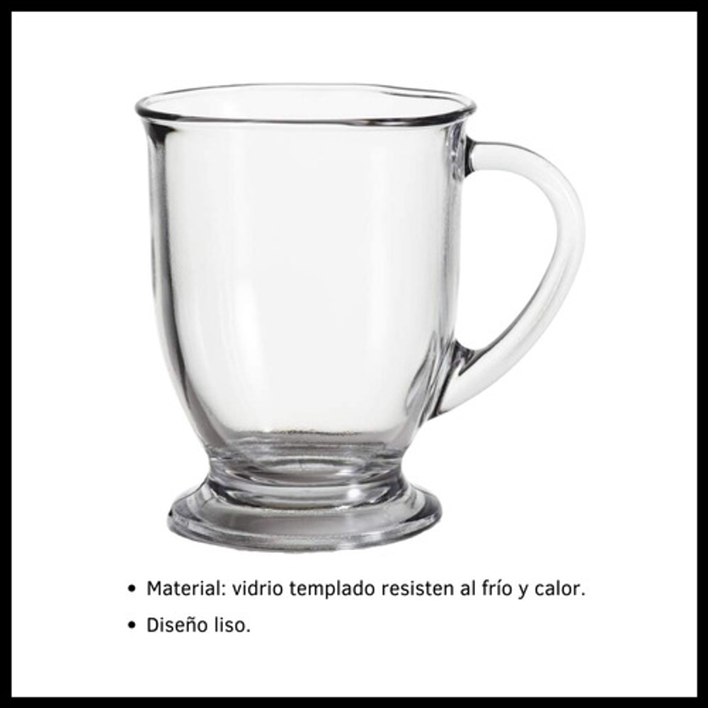 Características: • Material: vidrio templado. • Resistentes al frío y calor. • Capacidad 360 ml. • Diseño liso.